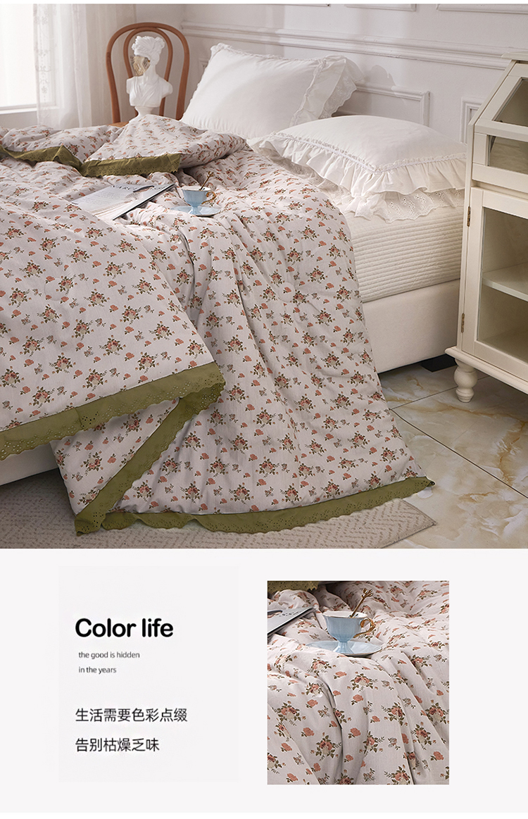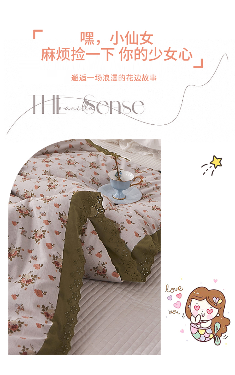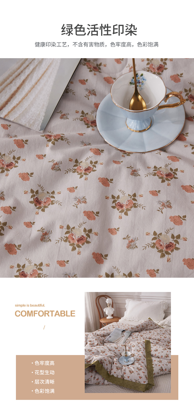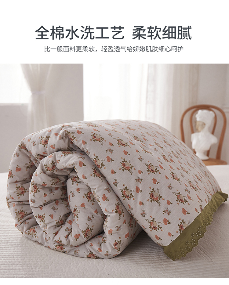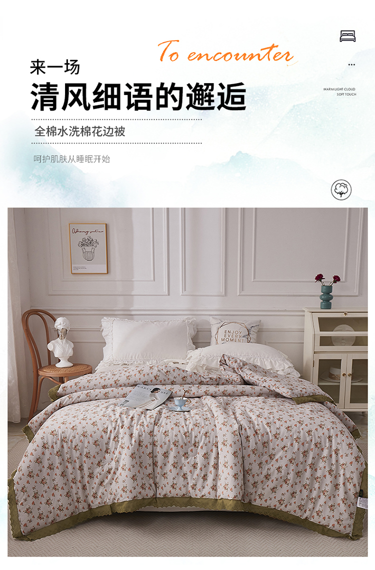 (总)上喜 热卖全棉水洗棉印花花边一体被