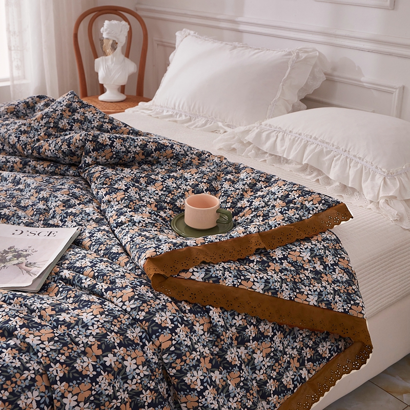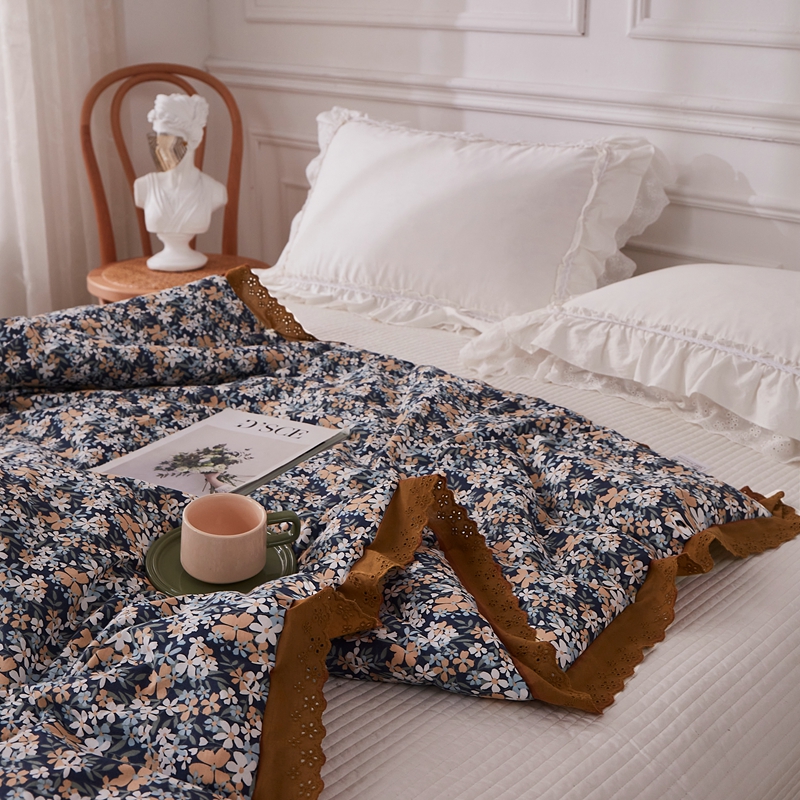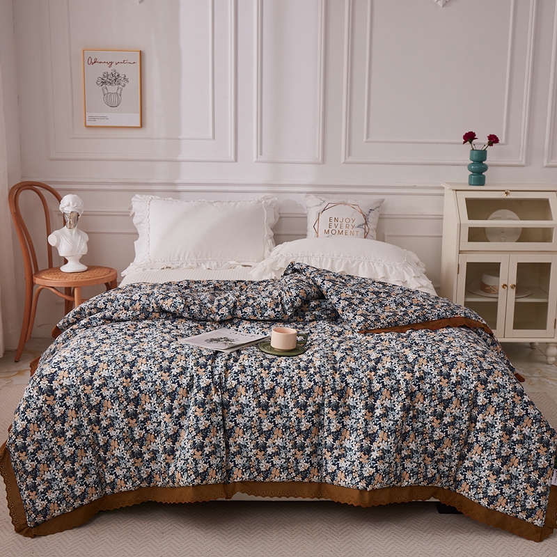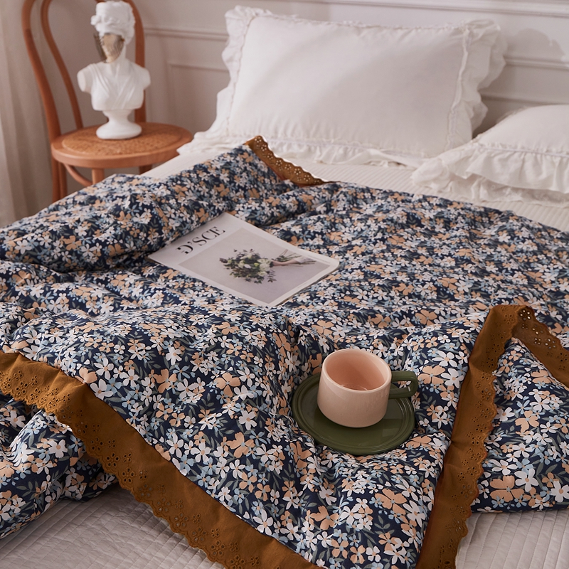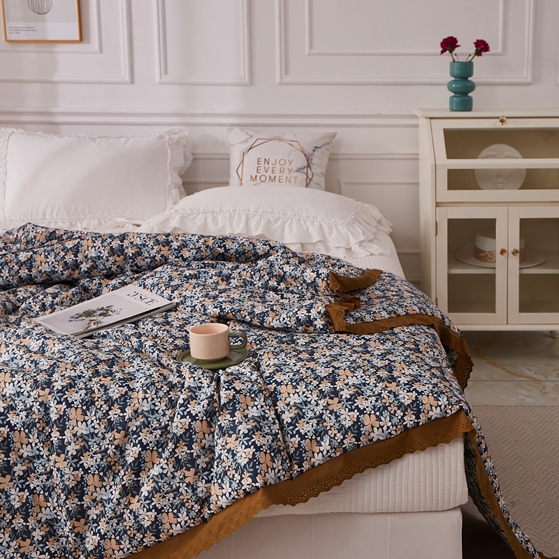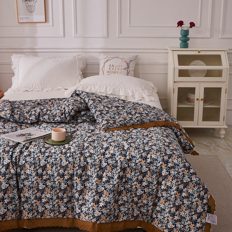 上喜 热卖全棉水洗棉印花花边一体被 氧气格调兰