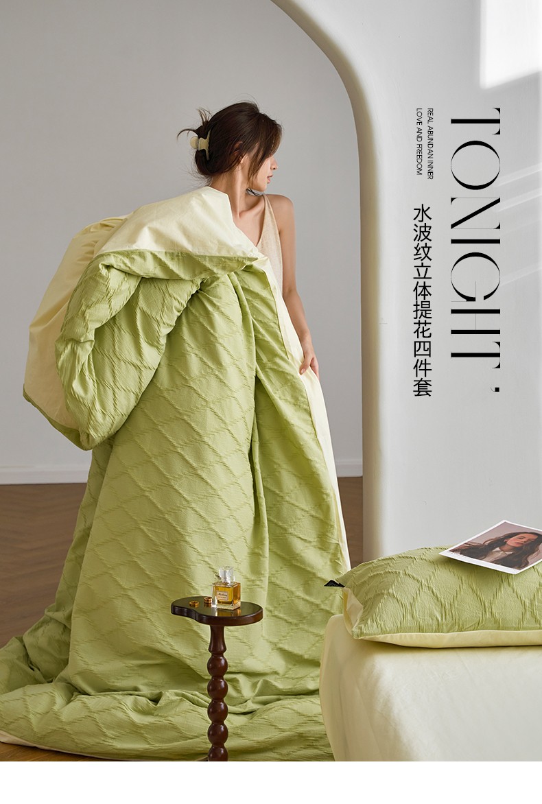 当前位置: 91家纺网 > 商品网购 > 床品套件 > 四件套 > 水洗棉四件套 > 2023新款法芙40s水波纹提花水洗棉全棉四件套(风格二) 法芙-芝士绿