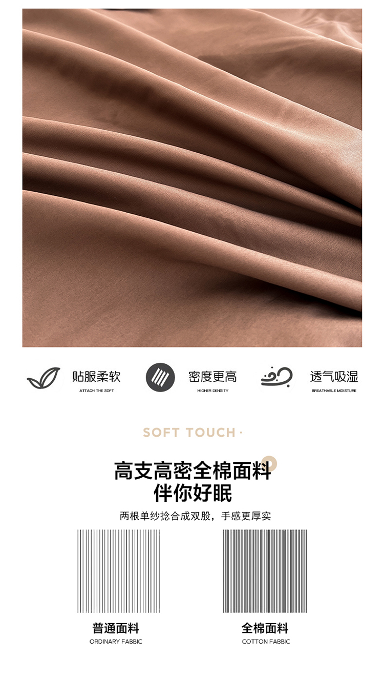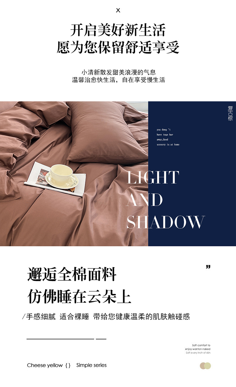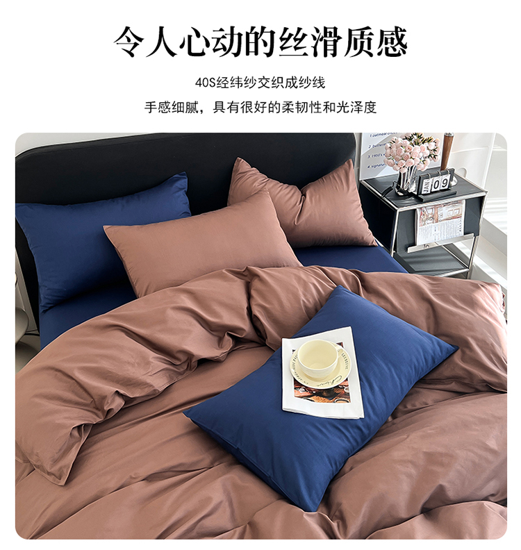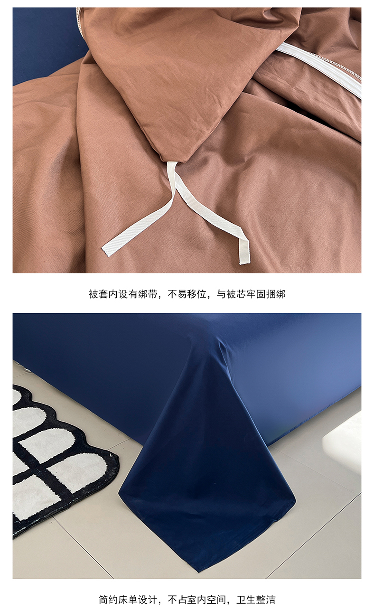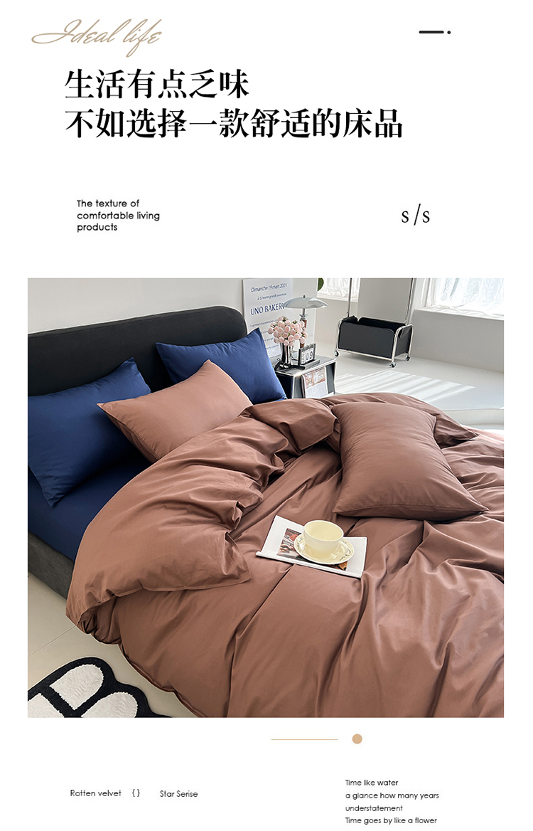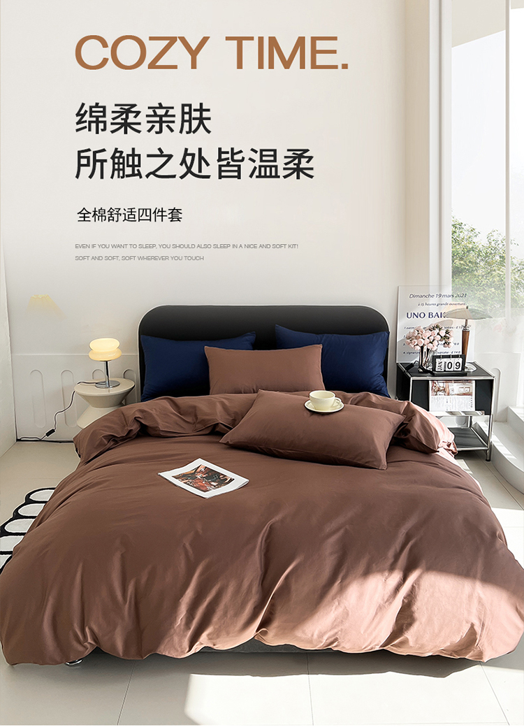 当前位置: 91家纺网 > 商品网购 > 床品套件 > 四件套 > 全棉普通四件套 > 恩和 2024新款全棉13374全棉ins纯色拼色四件套 复古棕