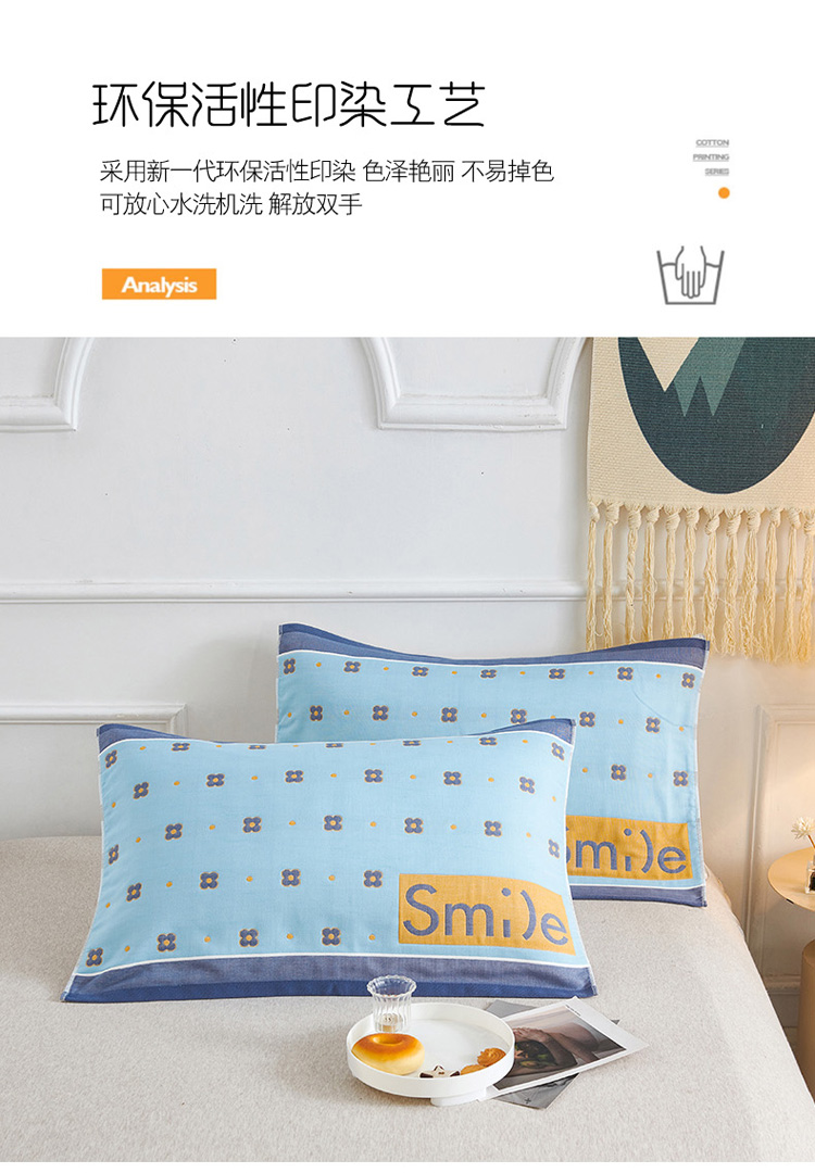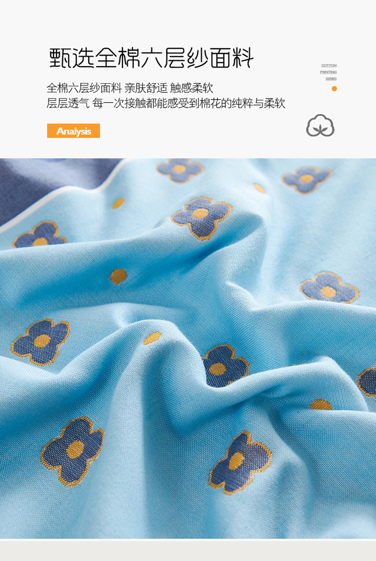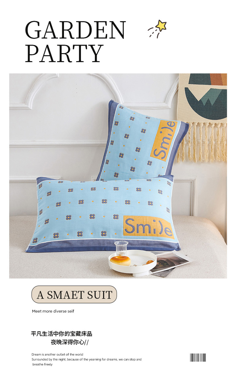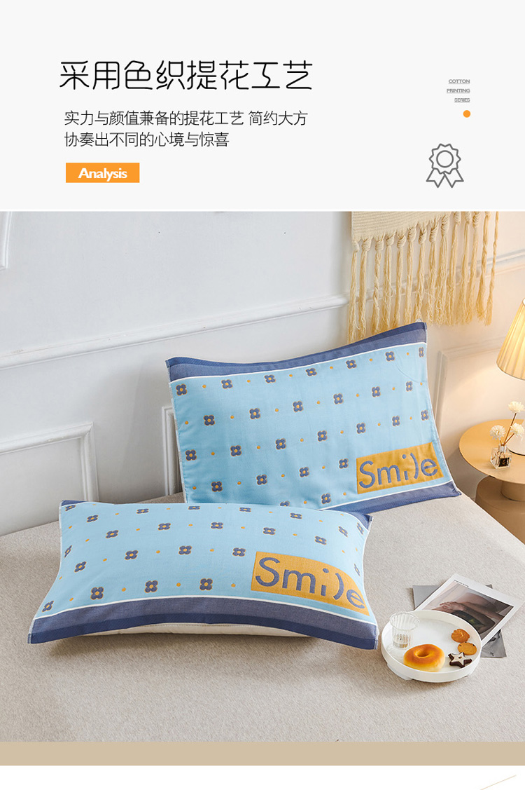 商品名称:棠薇 2023新款全棉6层纱布枕巾-简约系列 6层 繁星浅蓝53*80cm/对