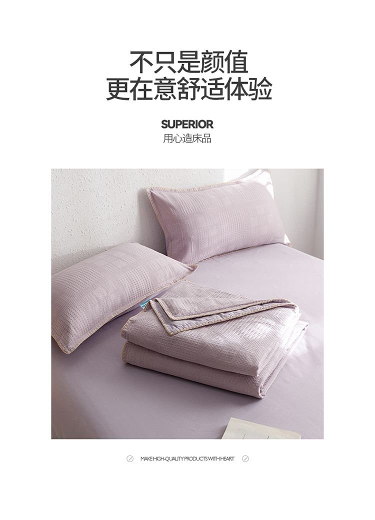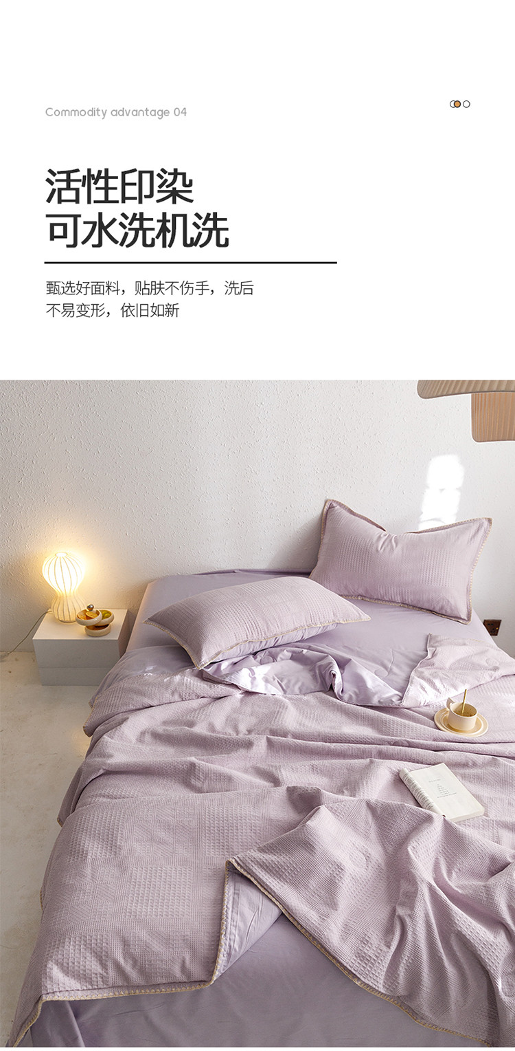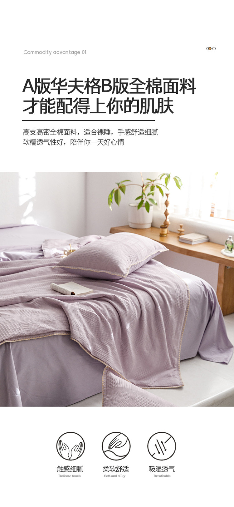 商品名称:沐棉家居 2023新款全棉华夫格夏被四件套 华夫格-紫