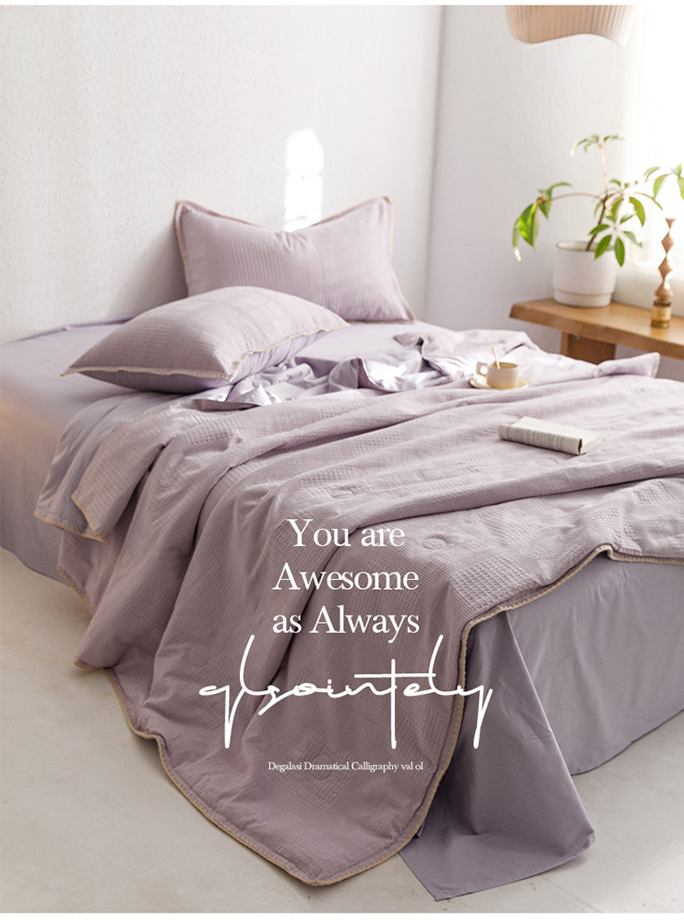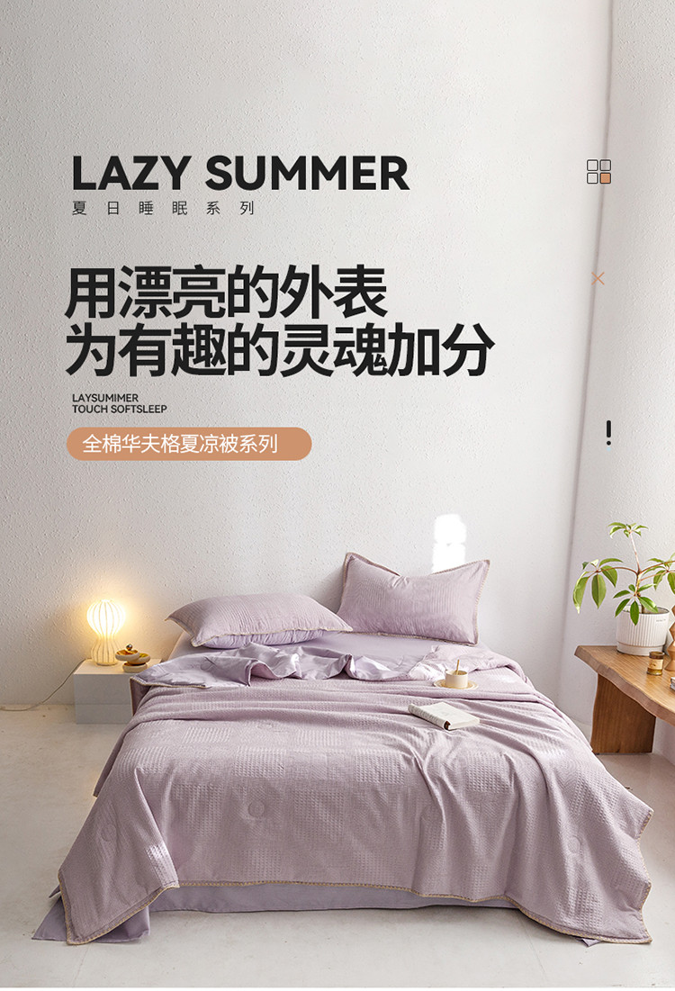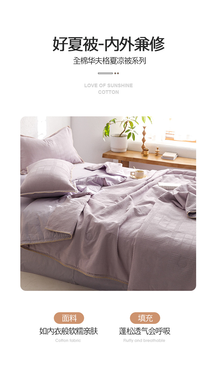沐棉家居 2023新款全棉华夫格夏被四件套 华夫格-紫
