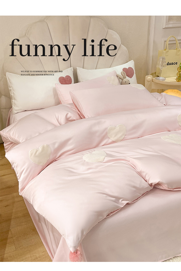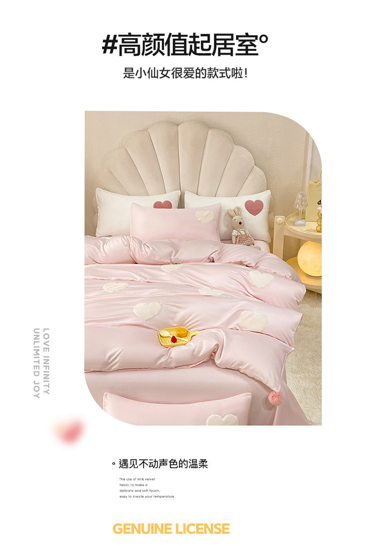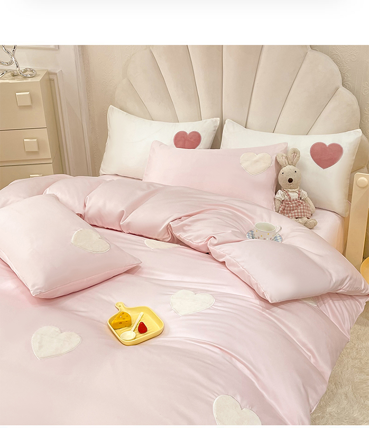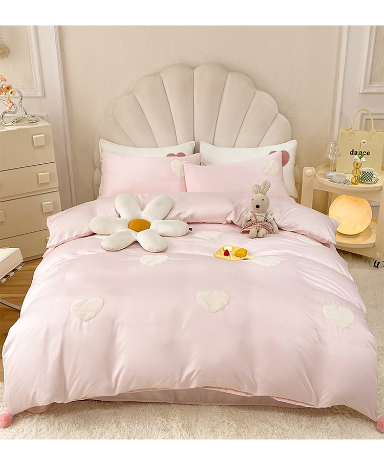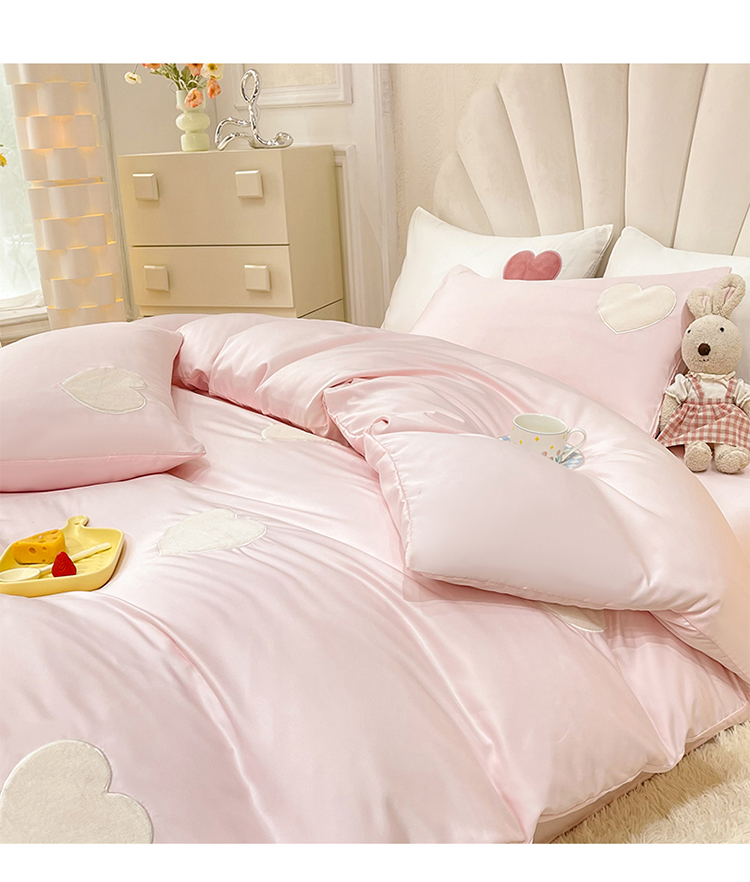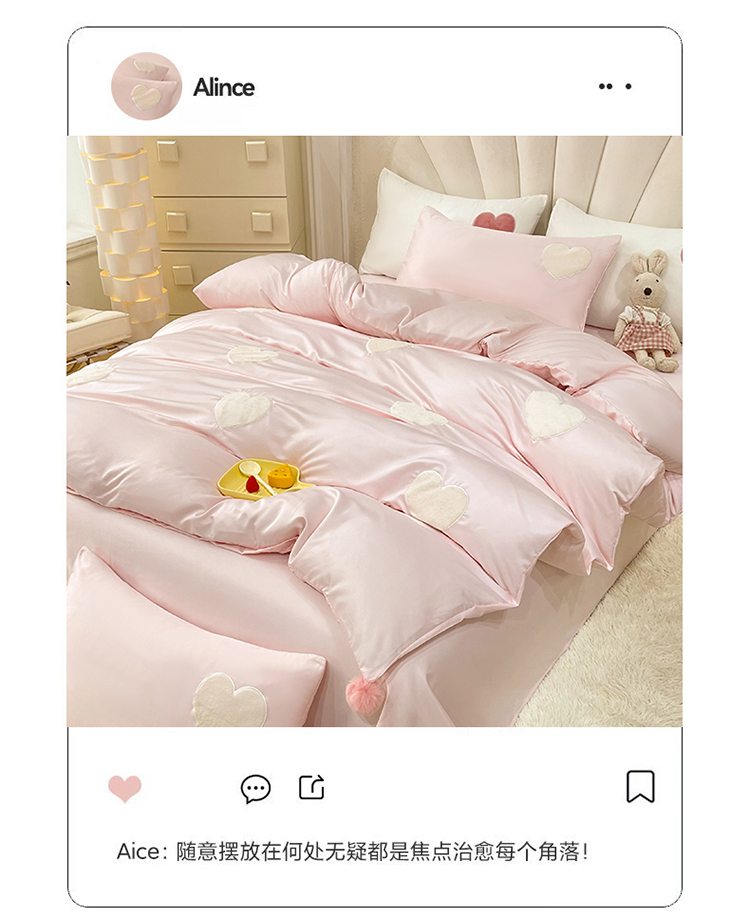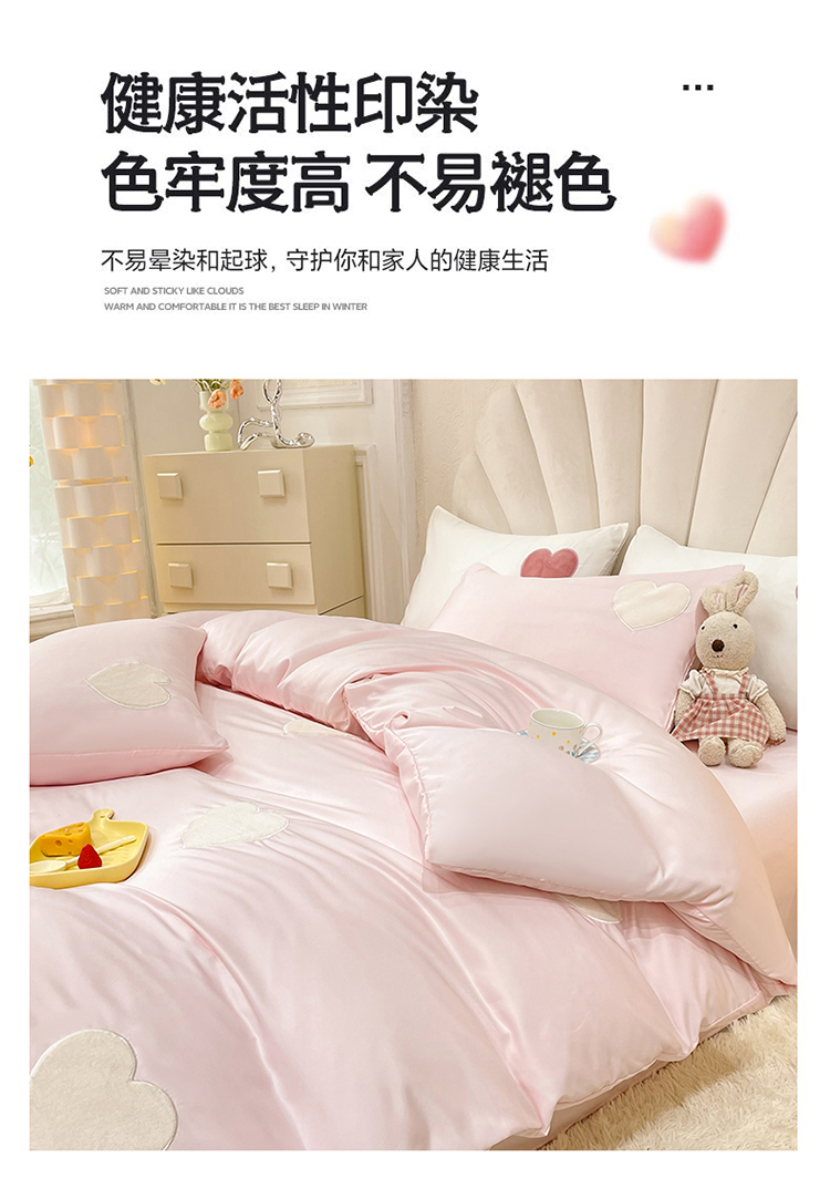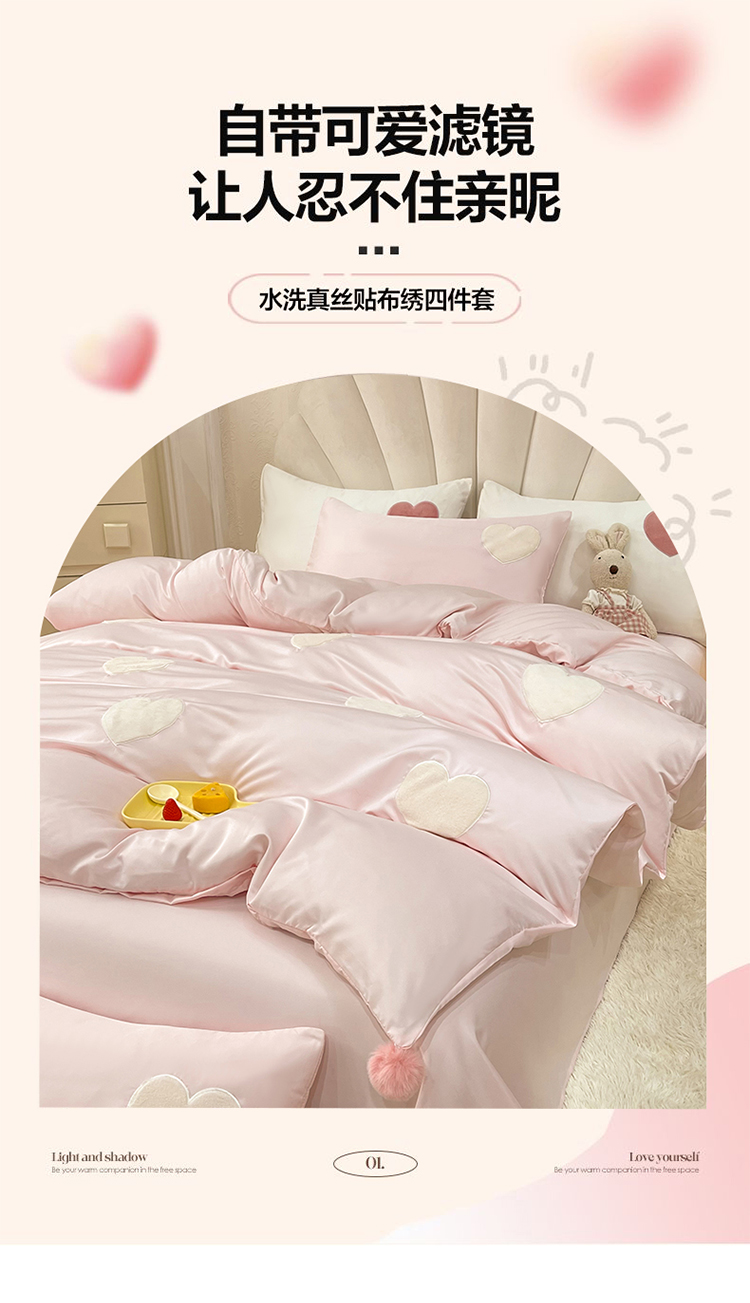 商品名称:艾米家居 2025新款水洗真丝刺绣四件套-爱心系列 爱心粉