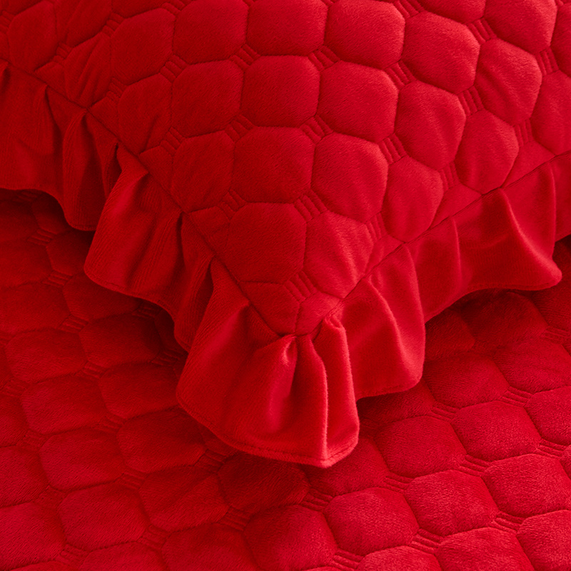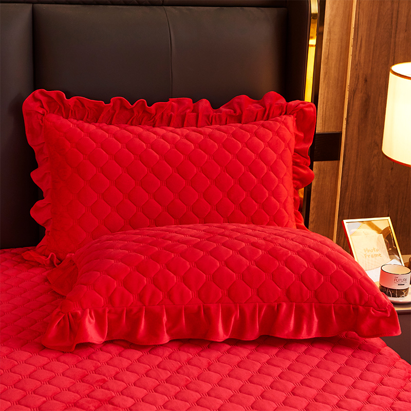晨晨 2023新款水晶绒夹棉花边单枕套 大红枕套