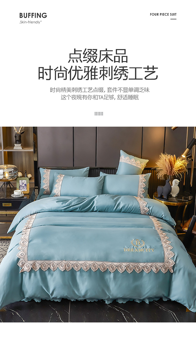 莉莉安 2025新款花边刺绣亲肤磨毛四件套梦境系列 梦境-静谧蓝