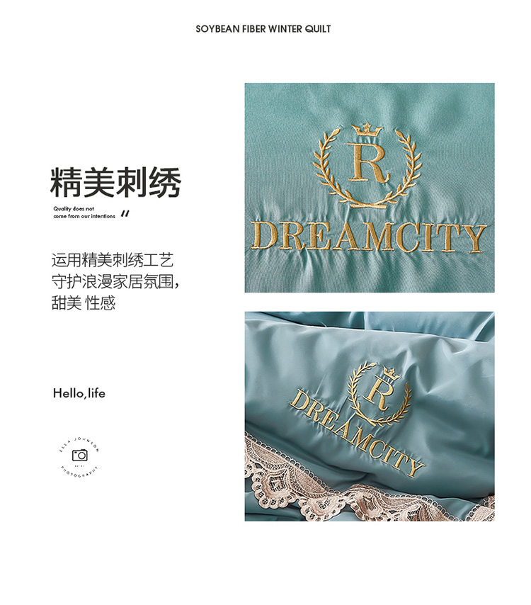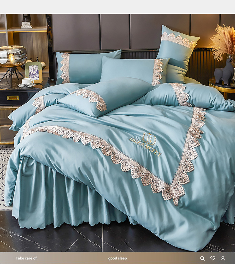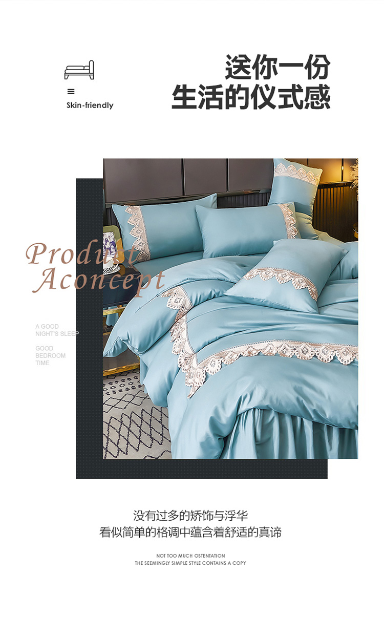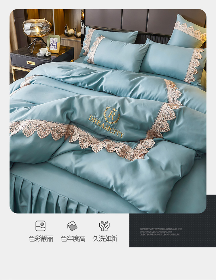 商品名称:莉莉安 2025新款花边刺绣亲肤磨毛四件套梦境系列 梦境-静谧蓝