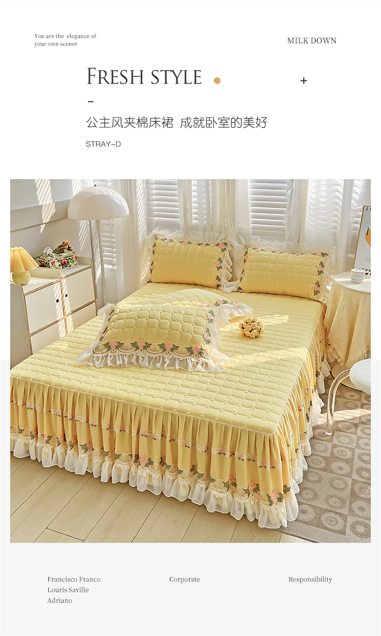 当前位置: 91家纺网 > 商品网购 > 床品套件 > 三件套 > 罗艺轩 2024新款夹棉床裙施华洛系列三件套 施华洛-亮黄