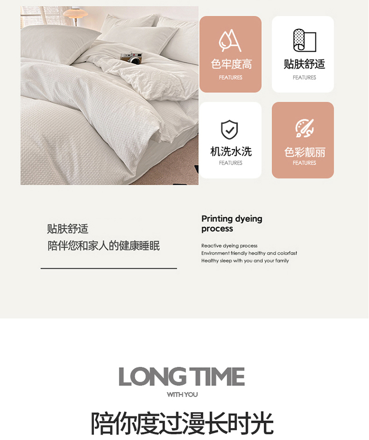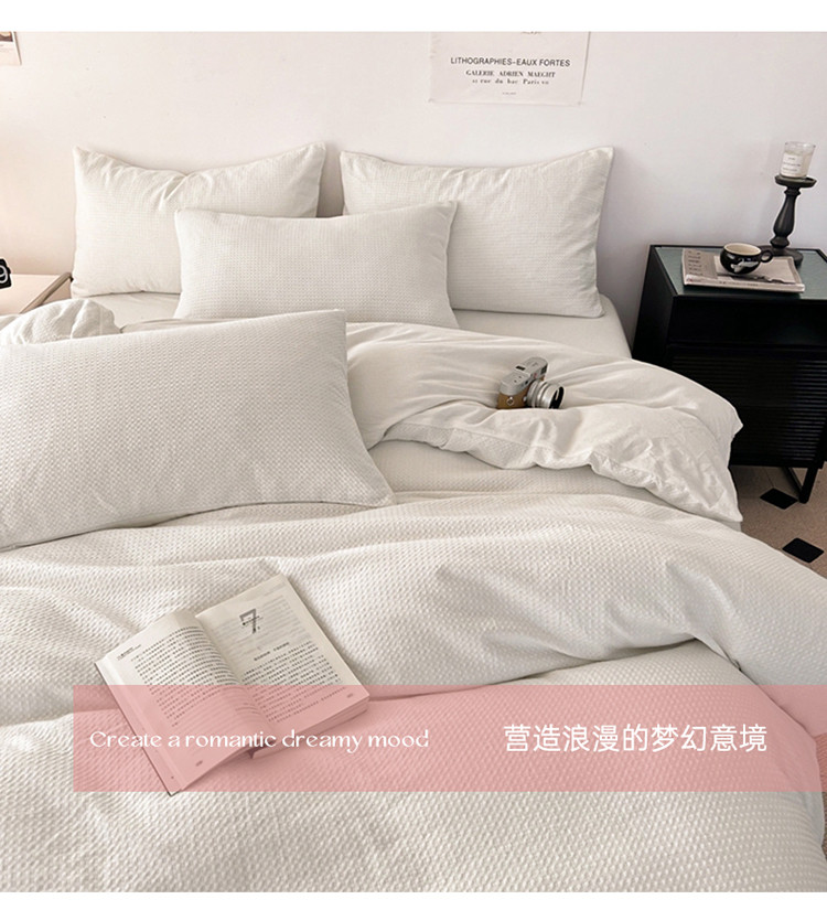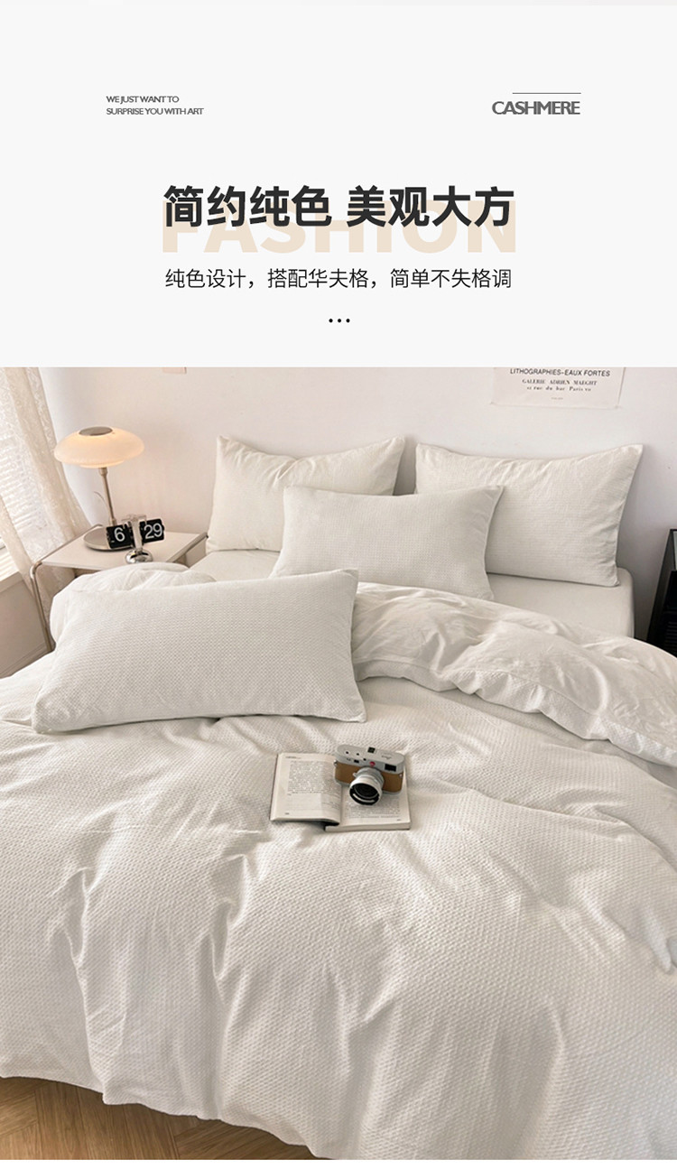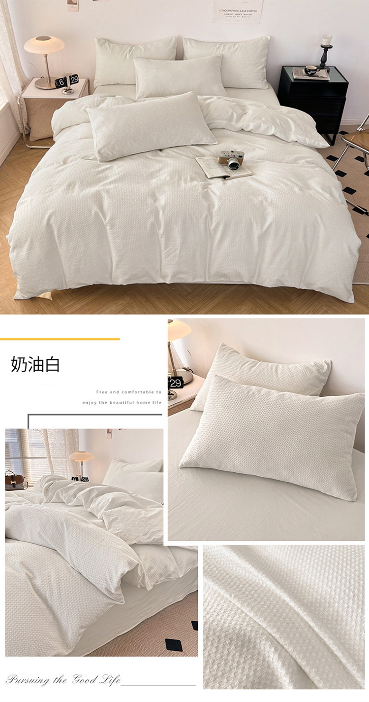 商品名称:雅萱 2023新款华夫格四件套-普通款 奶油白