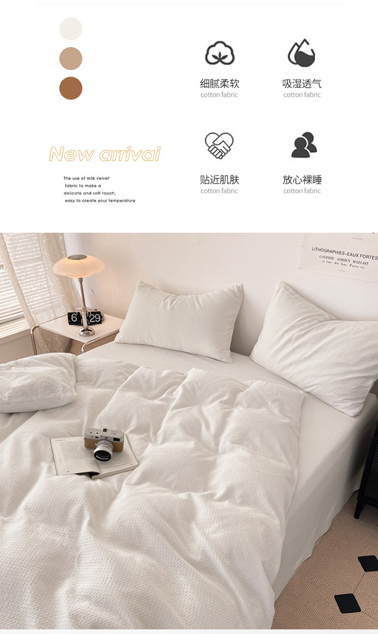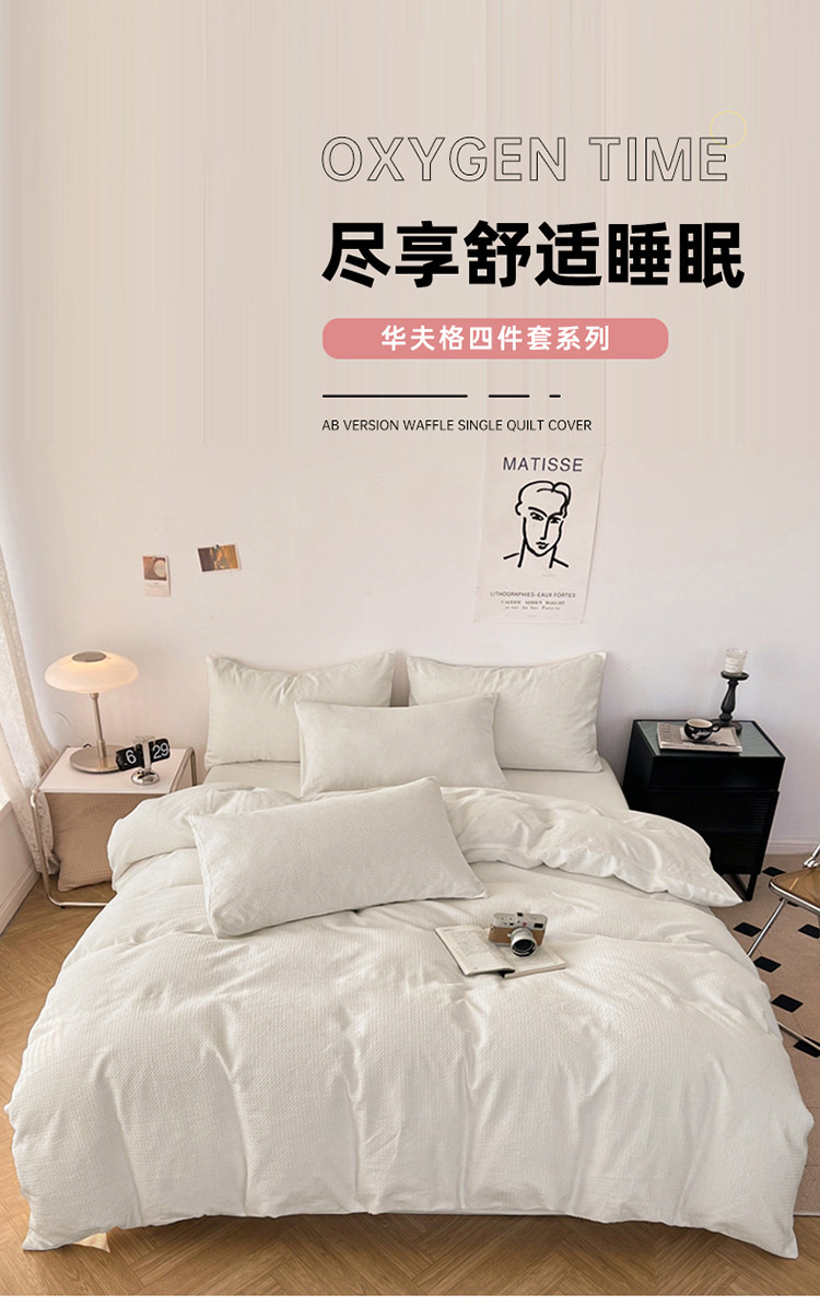 雅萱 2023新款华夫格四件套-普通款 奶油白