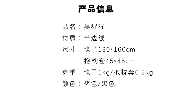 商品名称:(总)暖绵绵 2025新款半边绒针织工艺毯子黑猩猩
