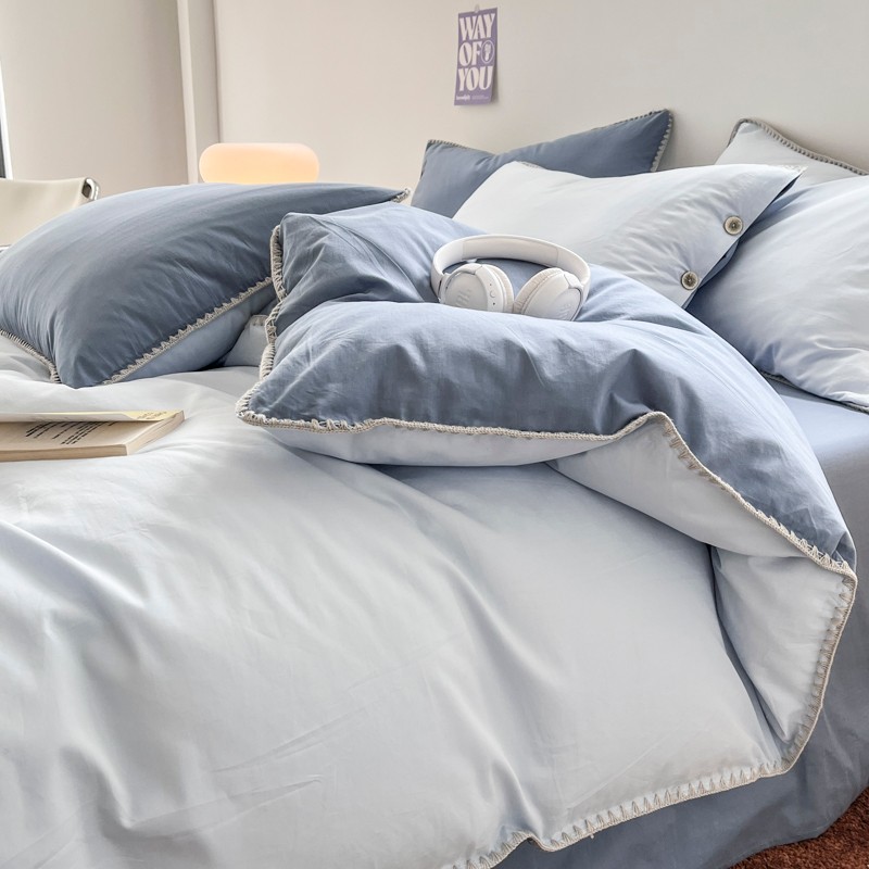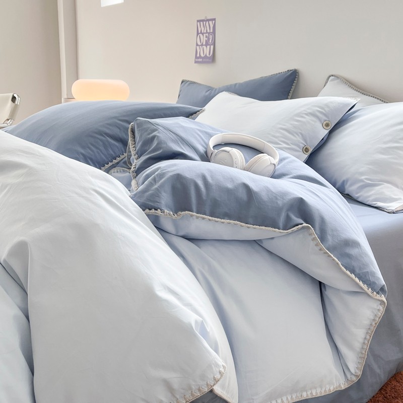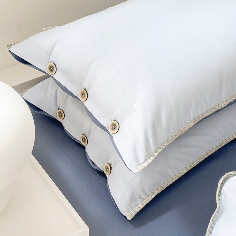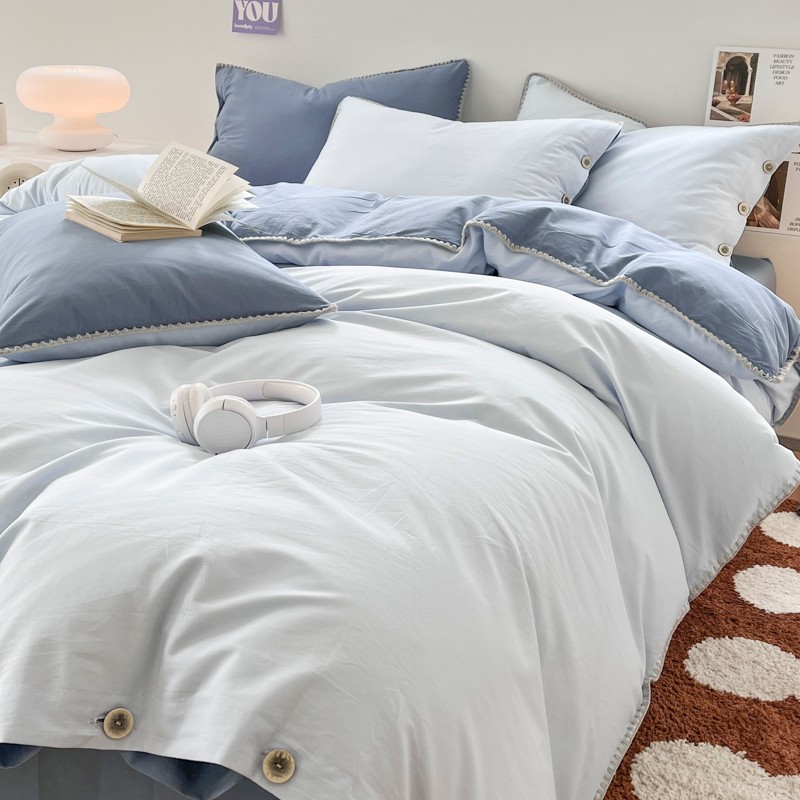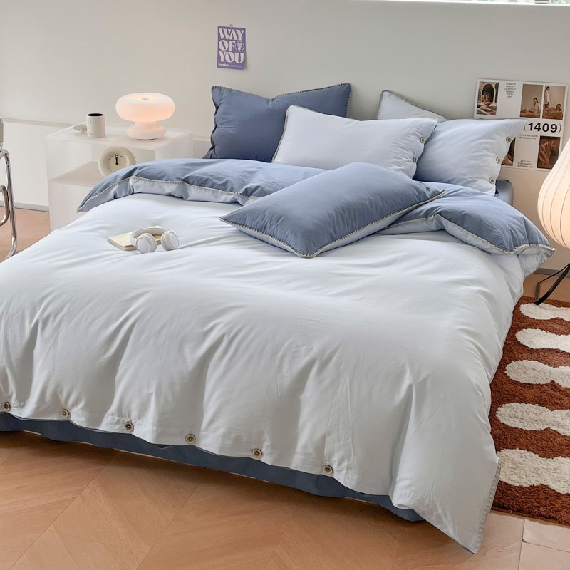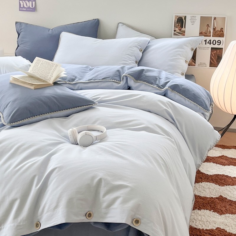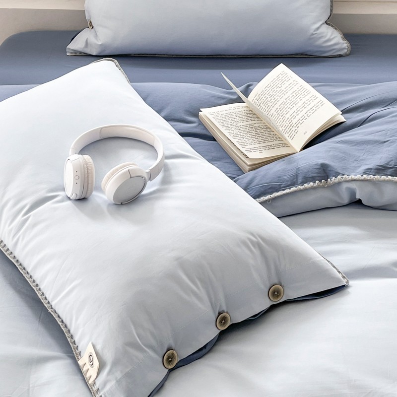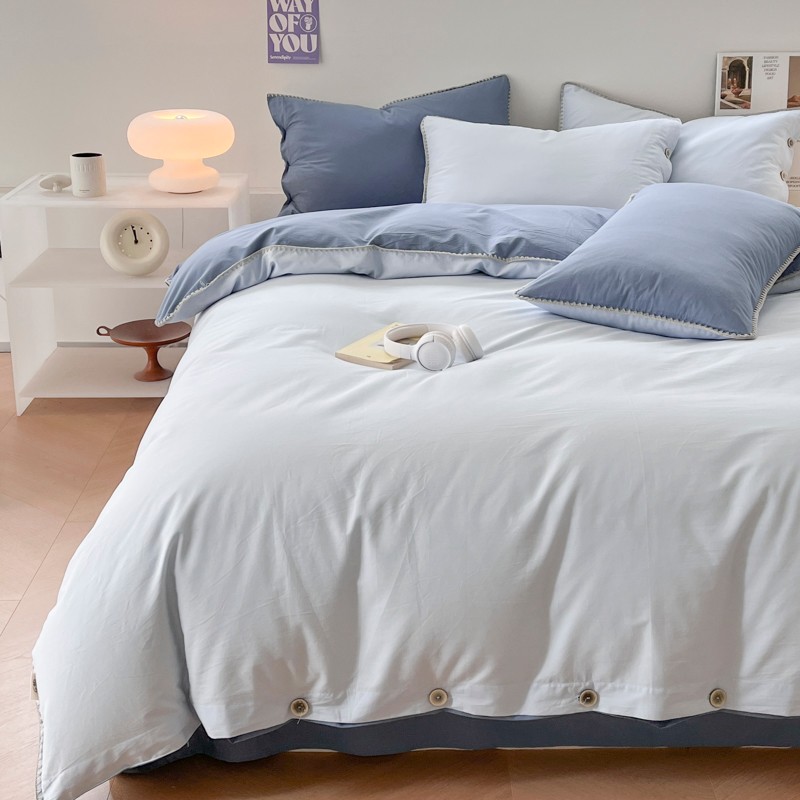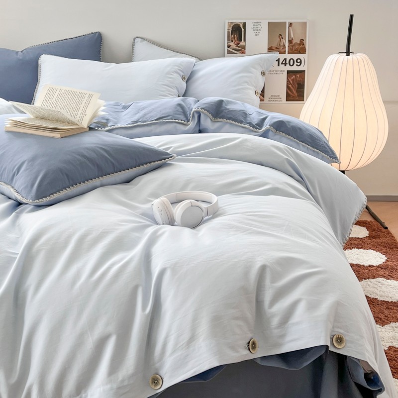 当前位置: 91家纺网 > 商品网购 > 床品套件 > 四件套 > 全棉普通四件套 > 蜜柚 2024新款A类全棉40支纯色纽扣款水洗棉四件套 海盐兰