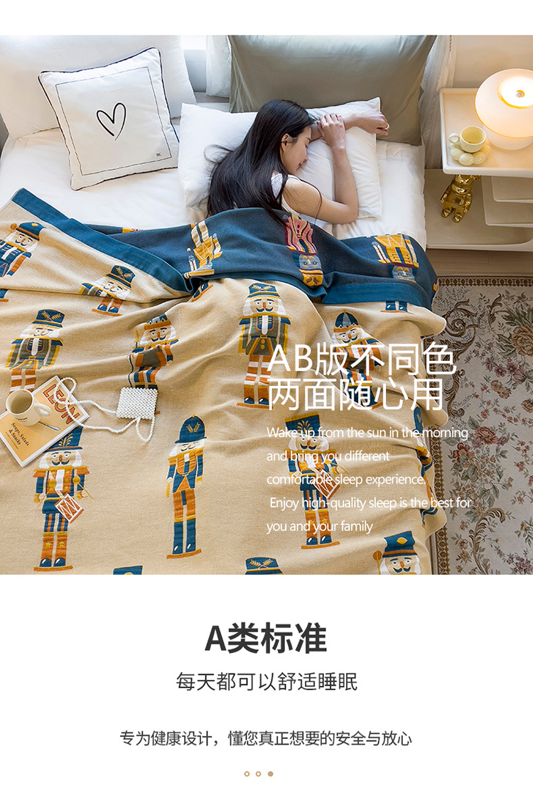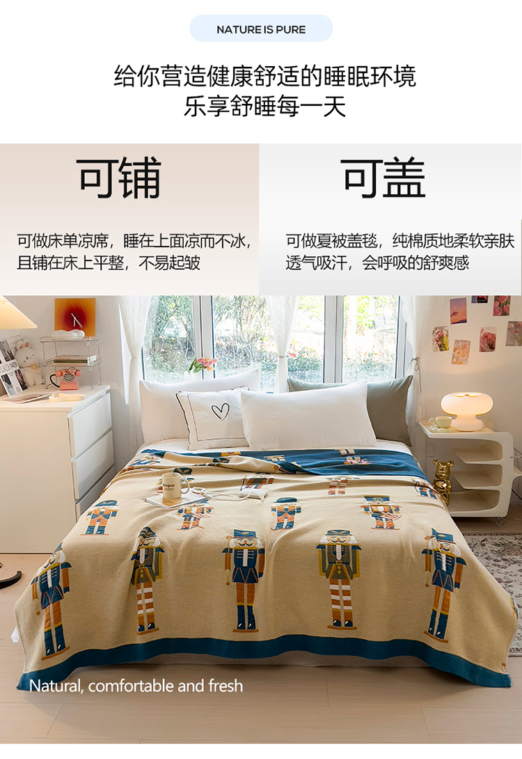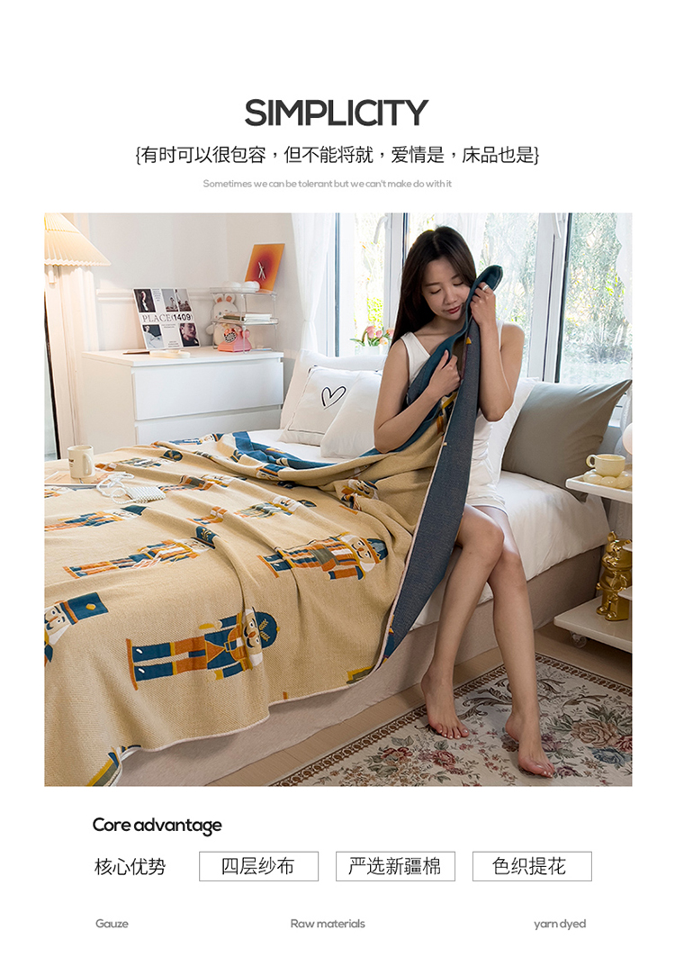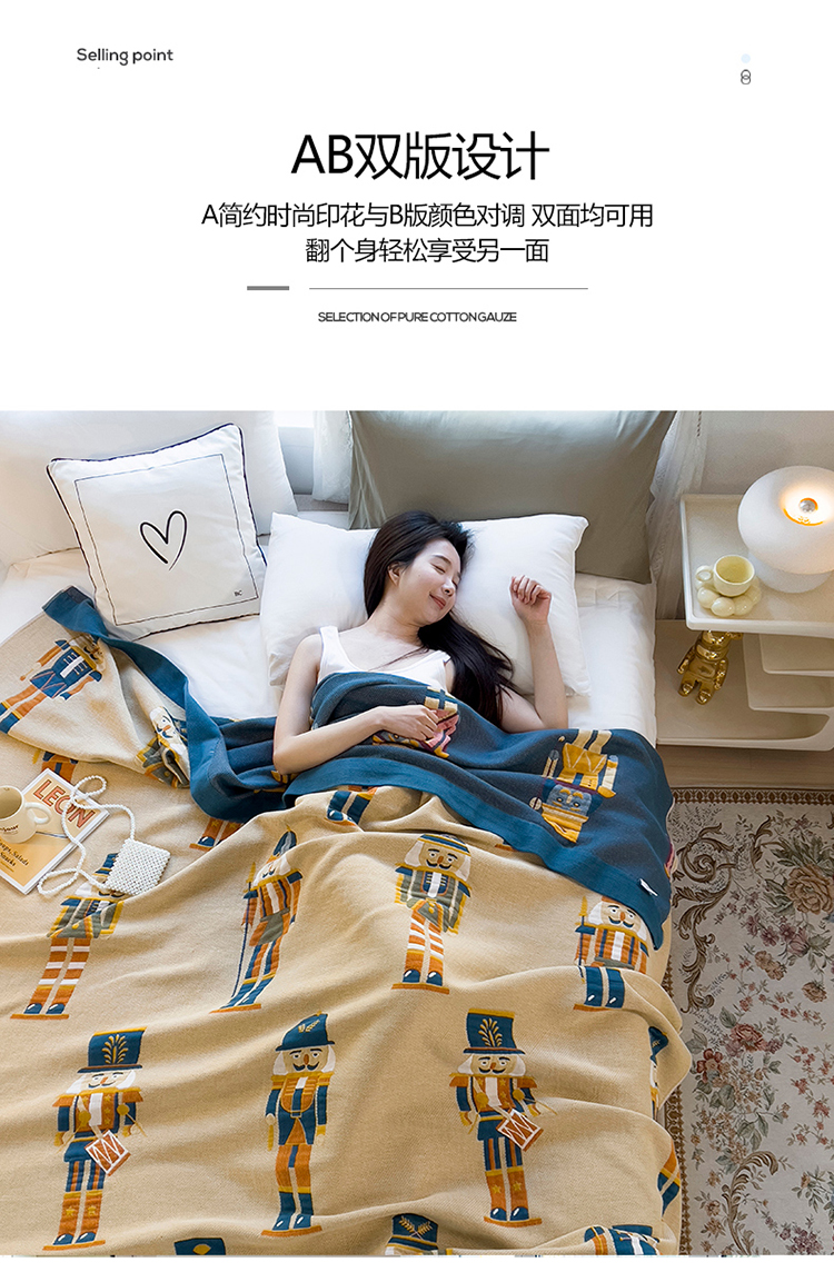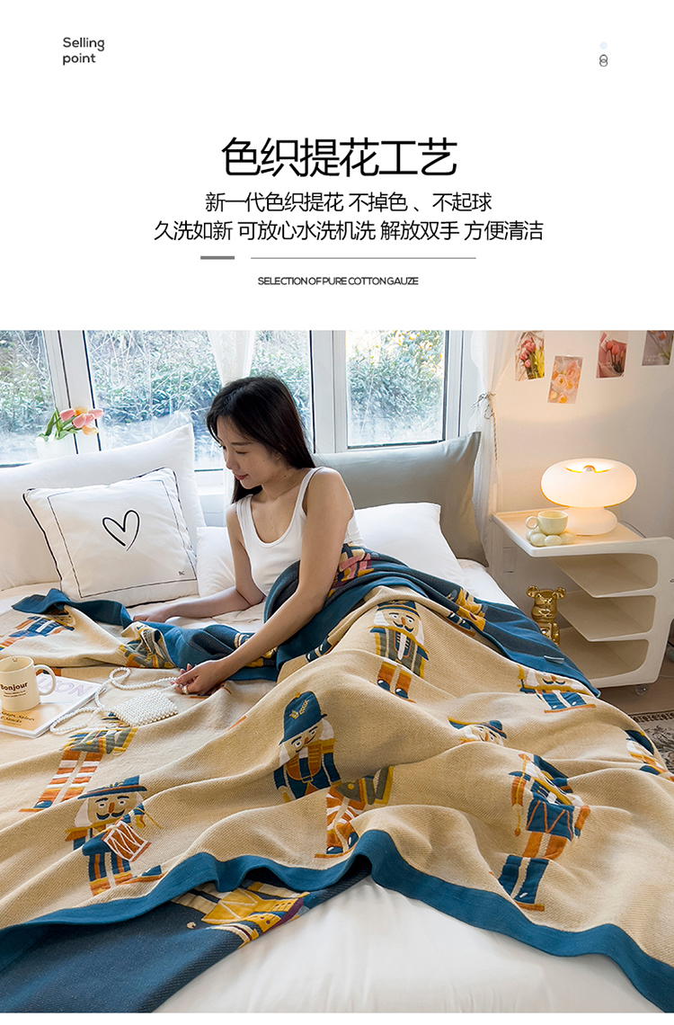 棠薇四层全棉宽边一体纱布盖毯夏被夏凉被空调被床单床盖 皇家卫兵