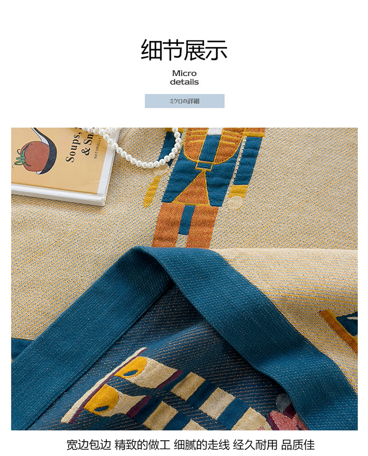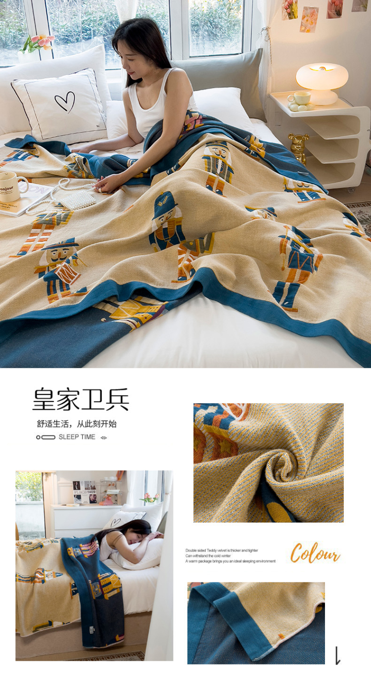 商品名称:棠薇四层全棉宽边一体纱布盖毯夏被夏凉被空调被床单床盖 皇家卫兵