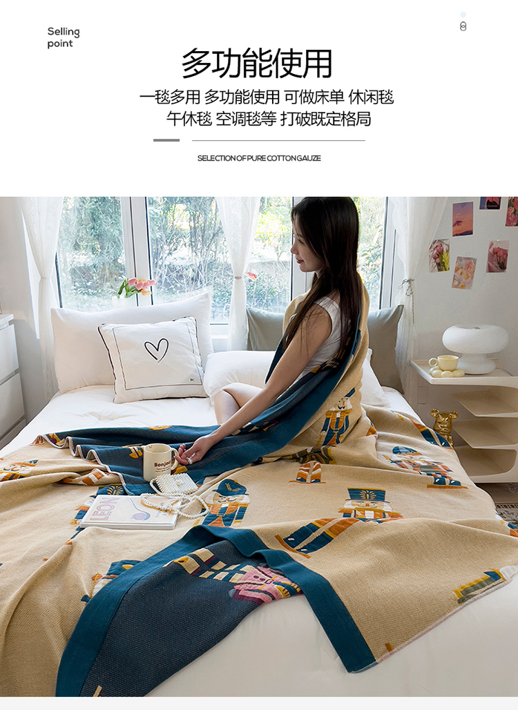 (总)棠薇家纺 2025新款爆款60S长绒棉厚百福字三层纱布毯 200x230cm 厚款60S百福毯,百福毯厚款