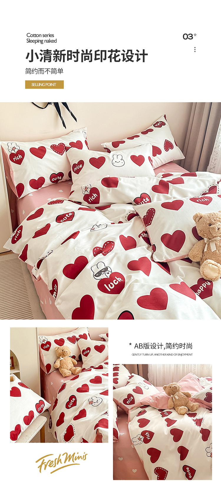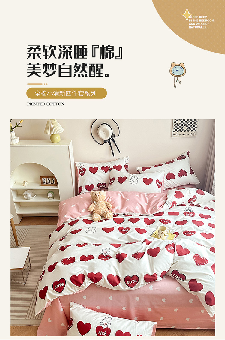 商品名称:惠居家 2023新款13372全棉小清新三件套四件套 心悦
