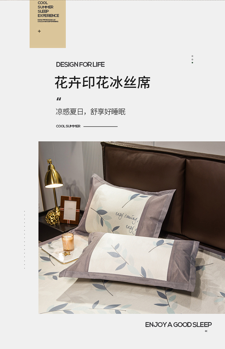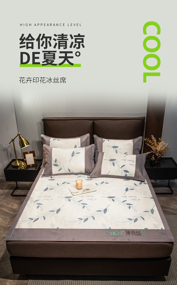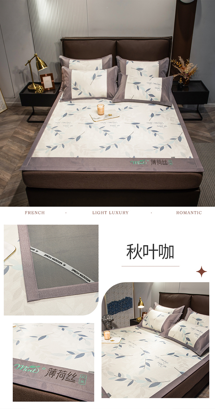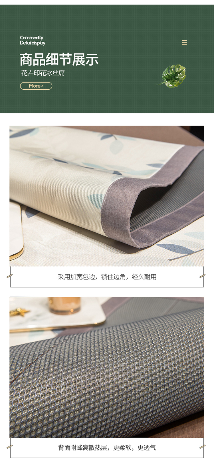 商品名称:全季家居2023年新款A类抗菌数码印花花卉系列冰丝席 秋叶咖