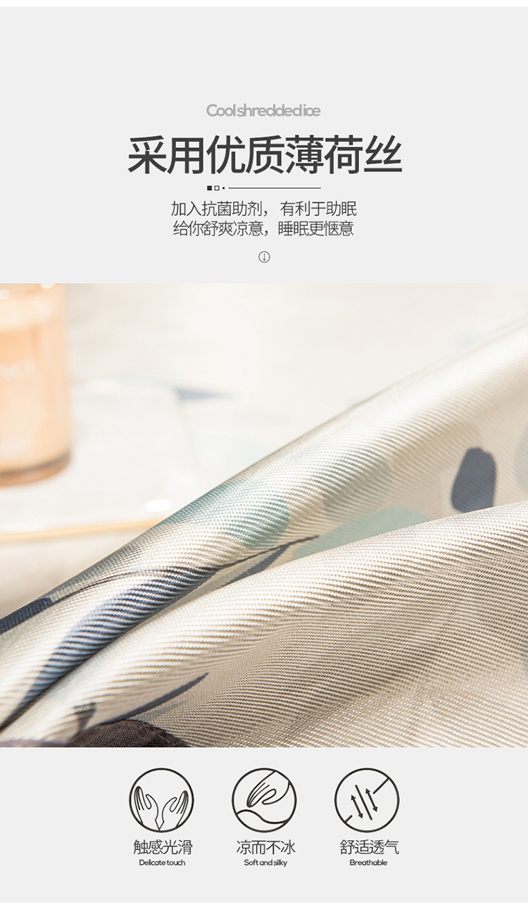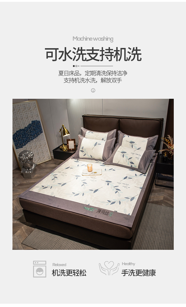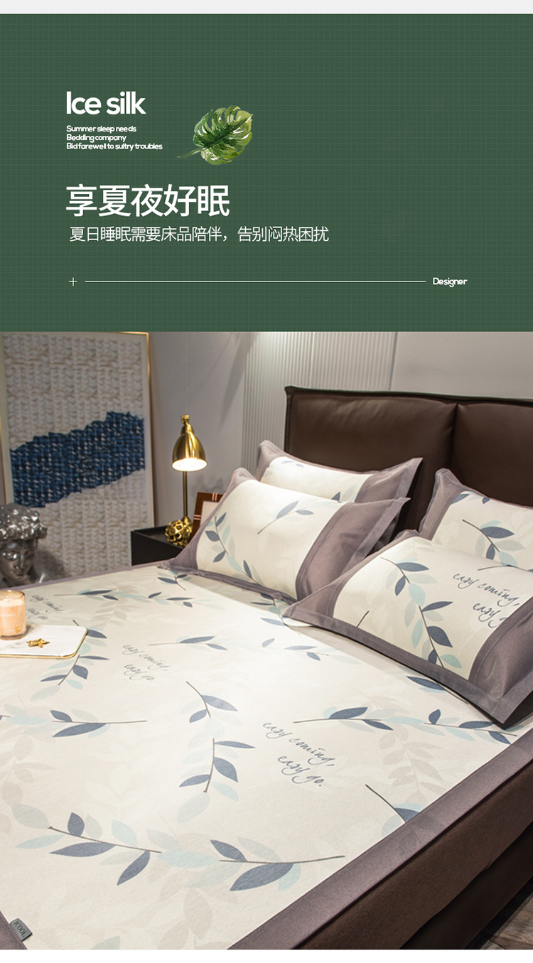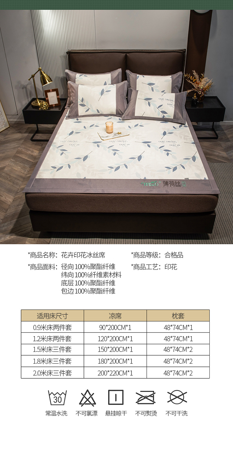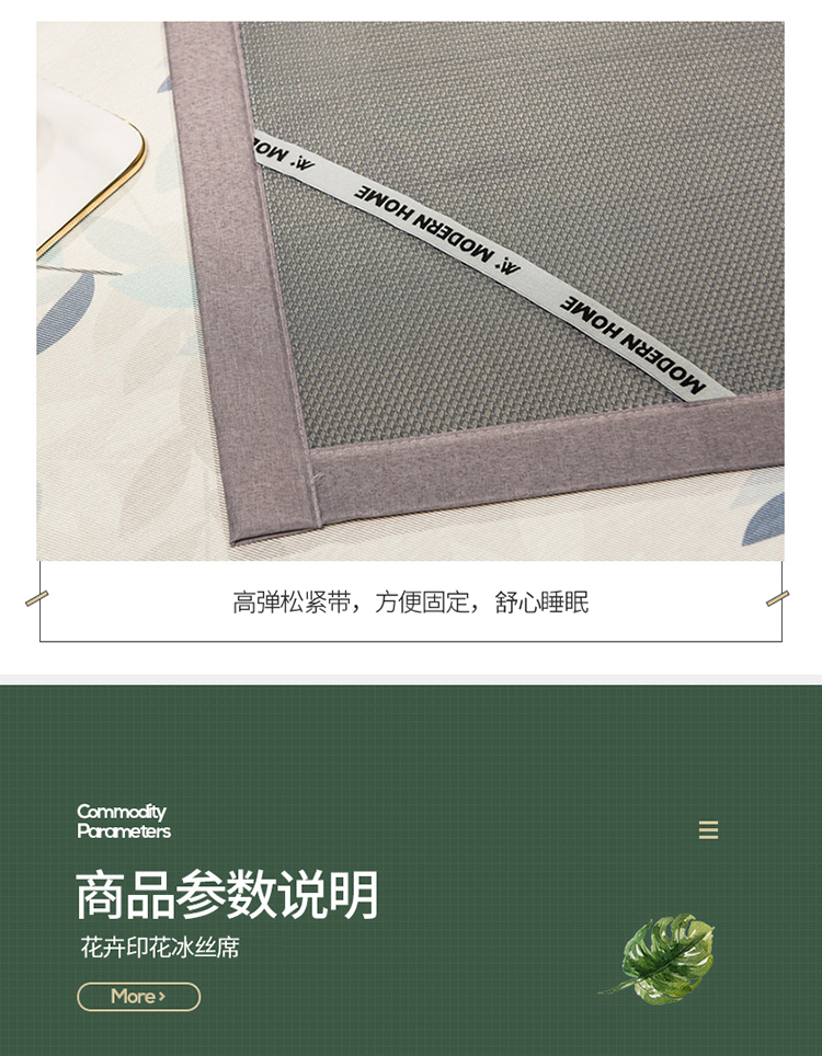 商品名称:全季家居2023年新款A类抗菌数码印花花卉系列冰丝席 秋叶咖