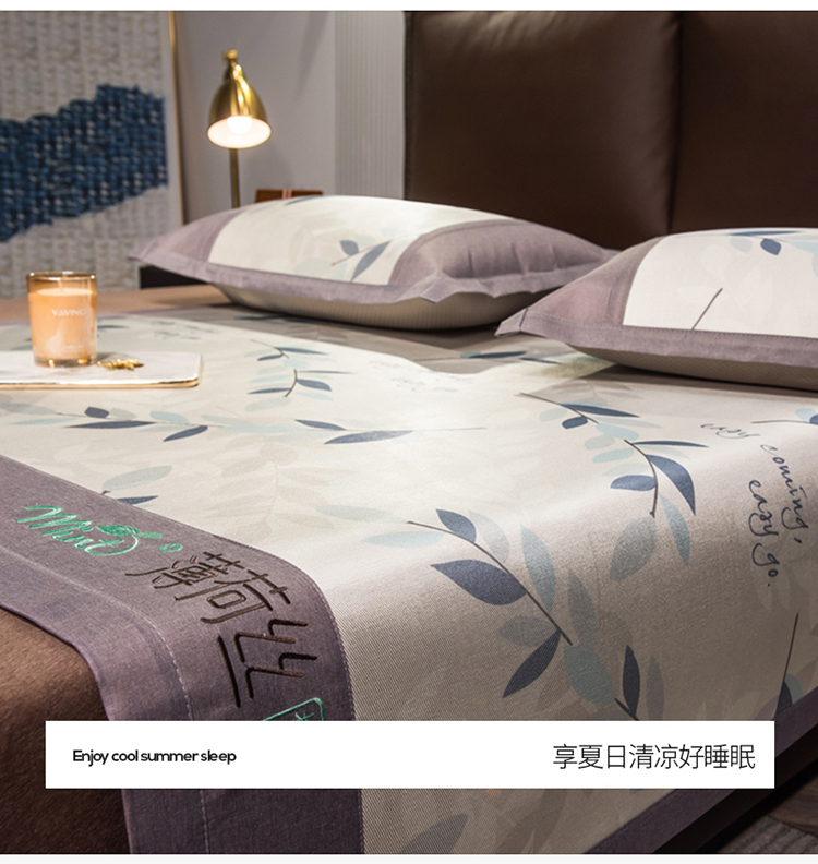 全季家居2023年新款A类抗菌数码印花花卉系列冰丝席 秋叶咖