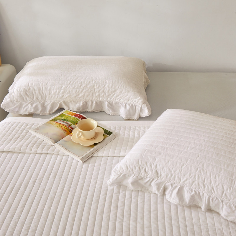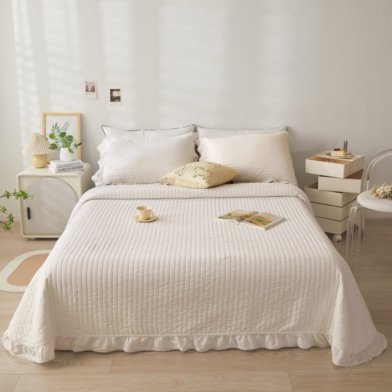 (总)上喜 2025新款全棉砂洗床盖新升级第五代,白色,湖蓝,奶油米,深灰,深咖