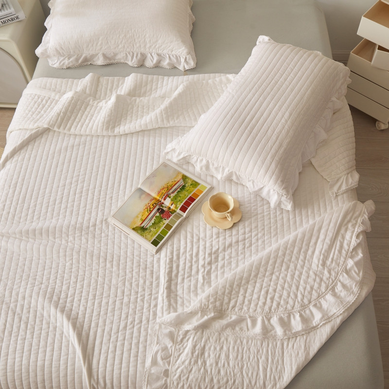 (总)上喜 2025新款韩国砂洗床盖+多功能夏被,白色,粉色,黄色,灰色,紫色