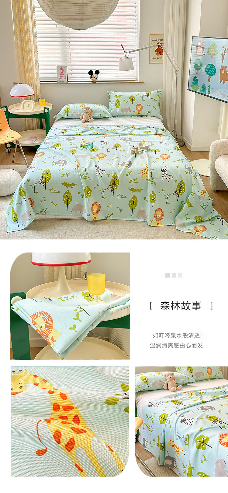 商品名称:麻依 2023新款竹纤维凉席三件套床单 森林故事