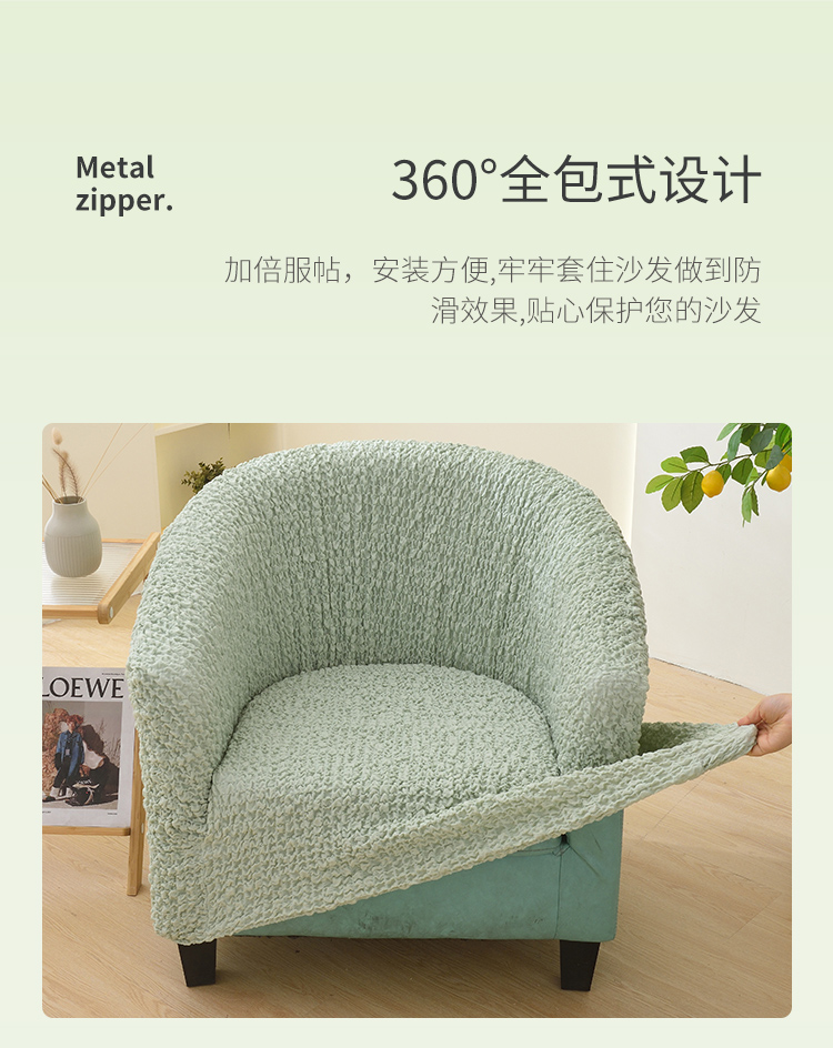 商品名称:启博家纺 2023新款奶油云纱半圆形卡座椅套 果绿色