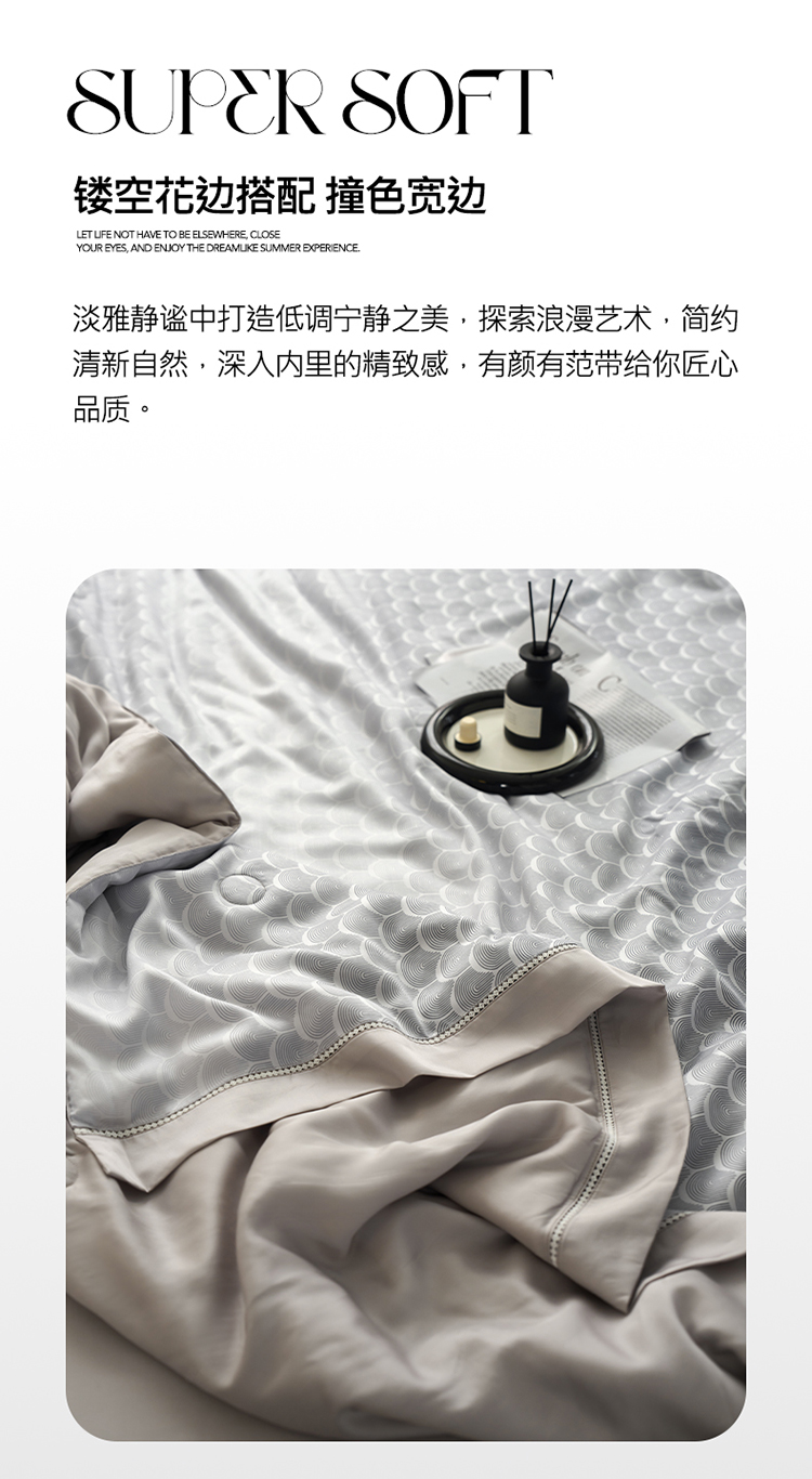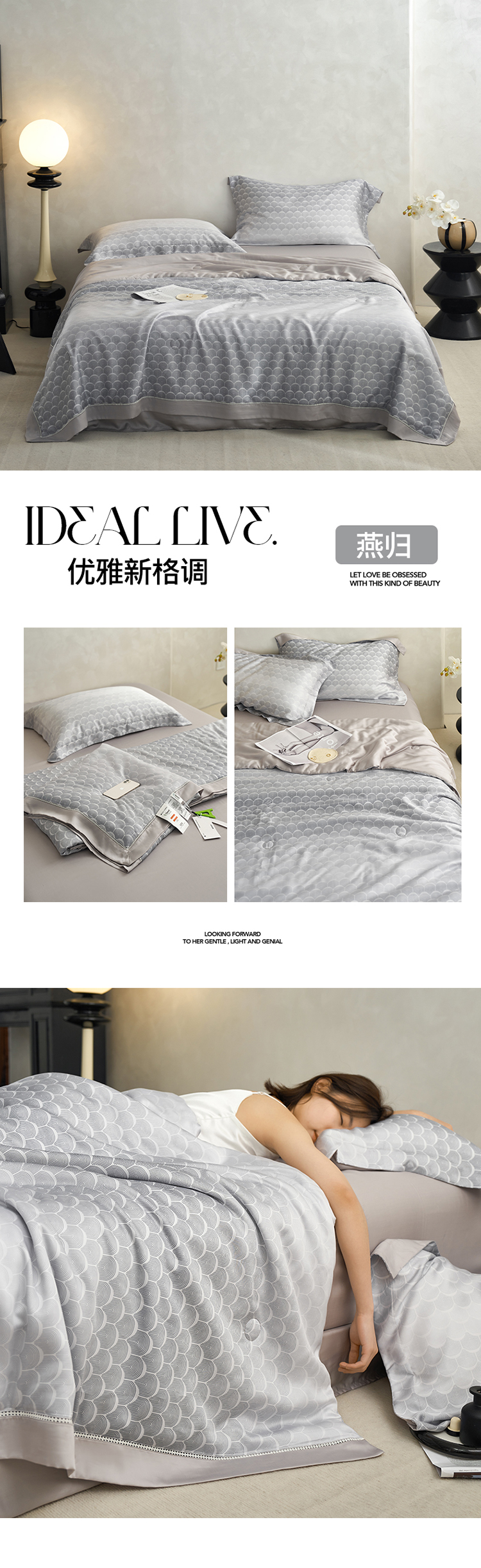 当前位置: 91家纺网 > 商品网购 > 被子 > 莱赛尔夏被 > 丽笙 2023新款A类兰精天丝印花镂空夏被 燕归