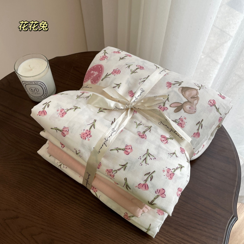 源启生活 新原创A类双层纱布全棉印花四件套纯棉三件套 花花兔