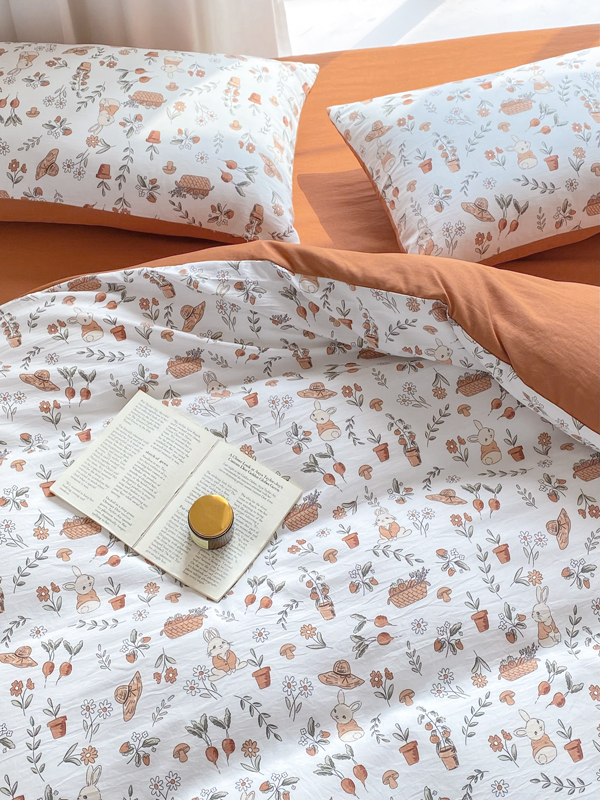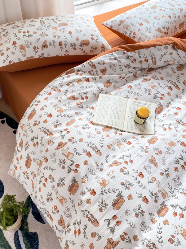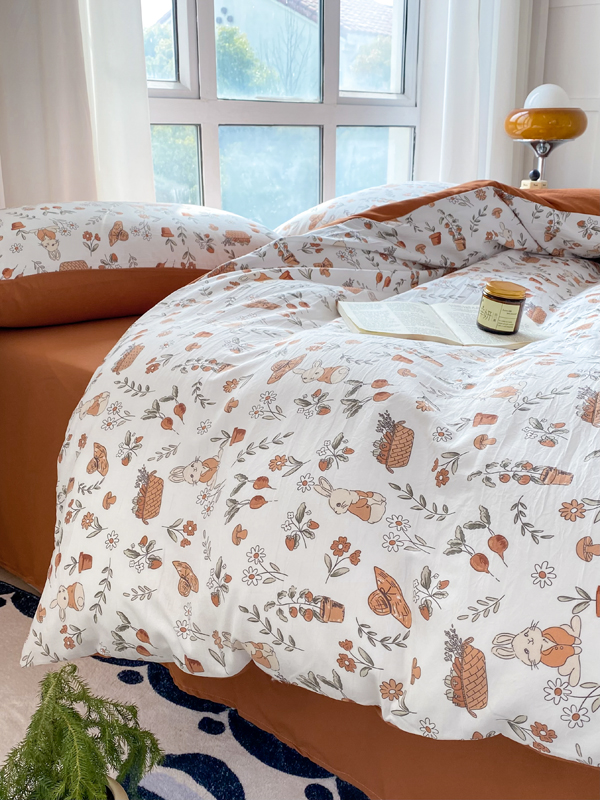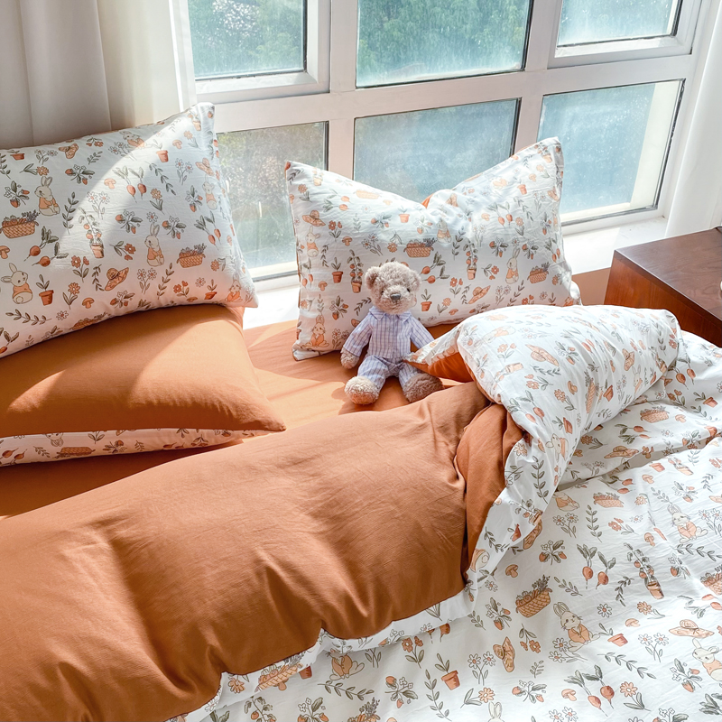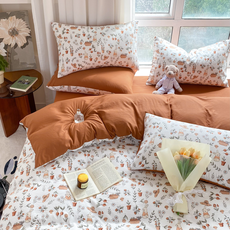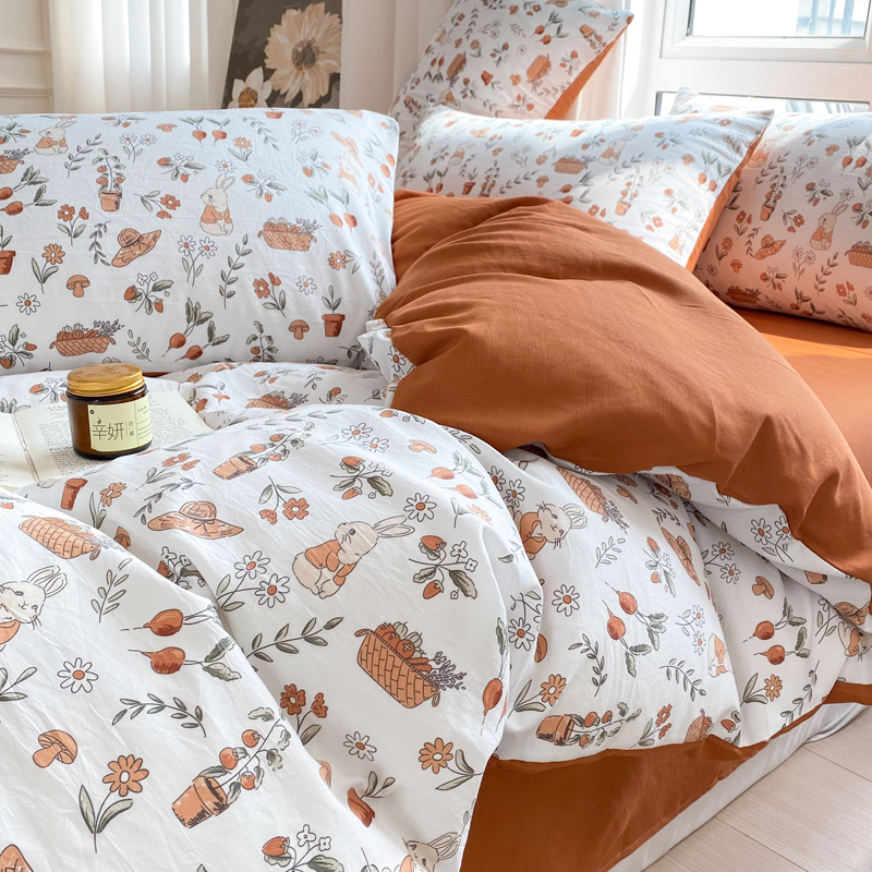 美莱 2023直播爆款水洗棉麻四件套小清新套件可谈价 蹲蹲兔