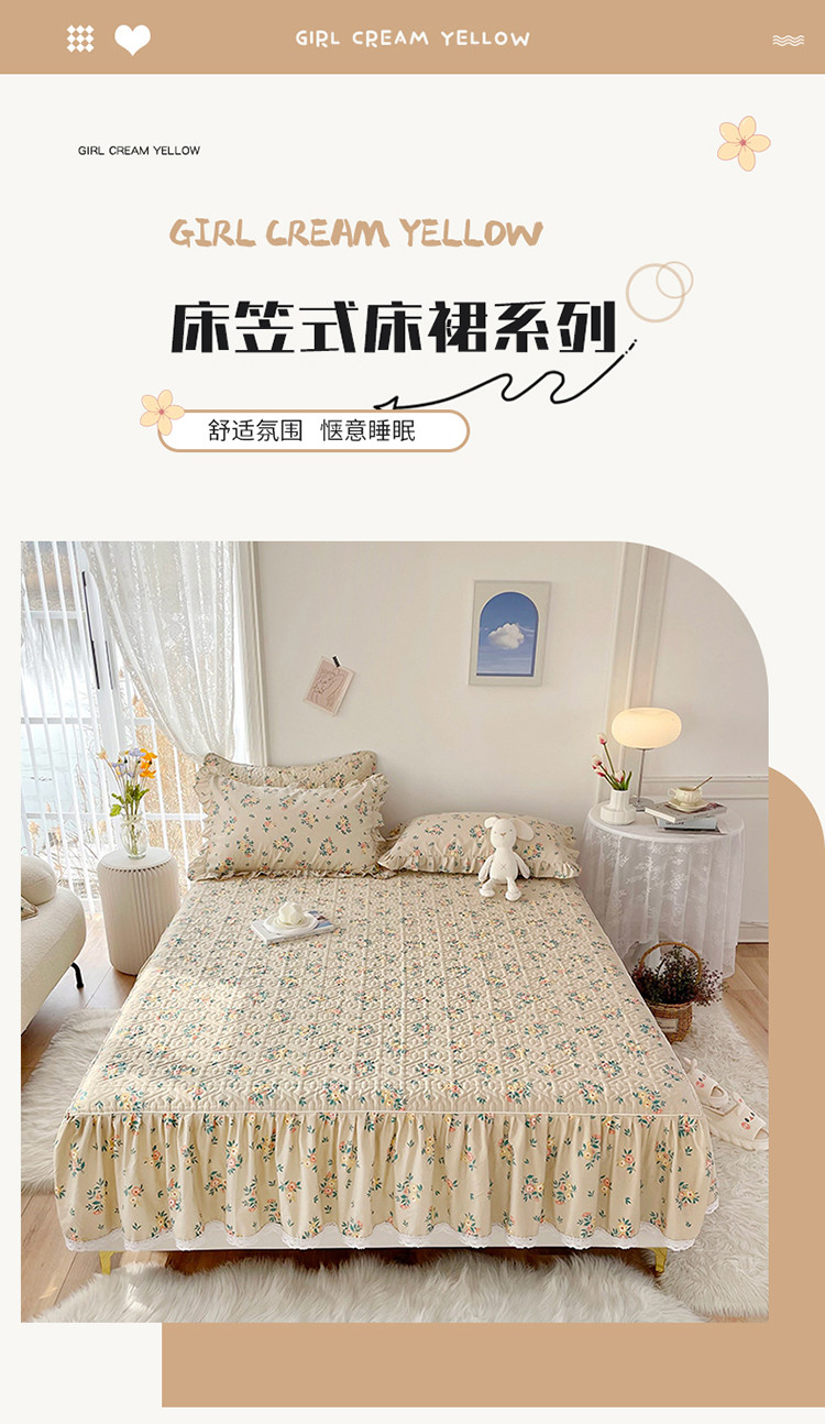忘忧草 2023新款13372全棉夹棉床笠式床裙纯棉 夏遇-棕