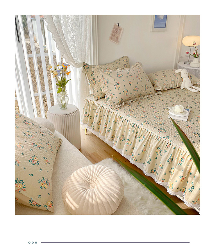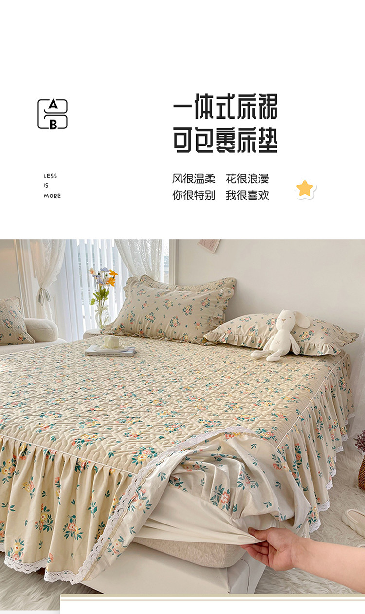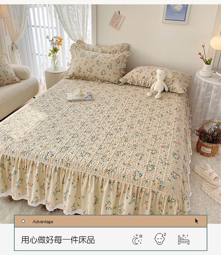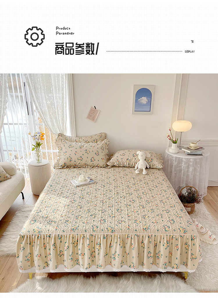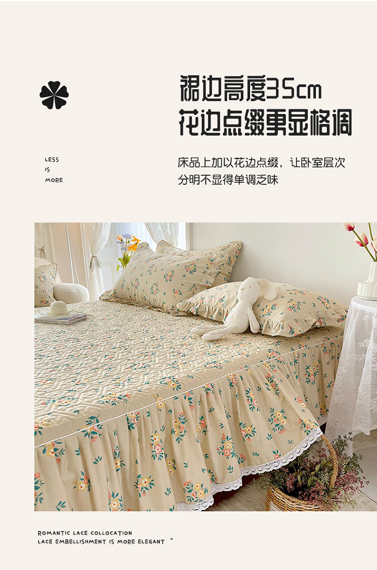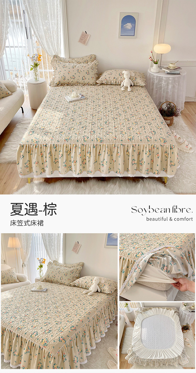 商品名称:忘忧草 2023新款13372全棉夹棉床笠式床裙纯棉 夏遇-棕