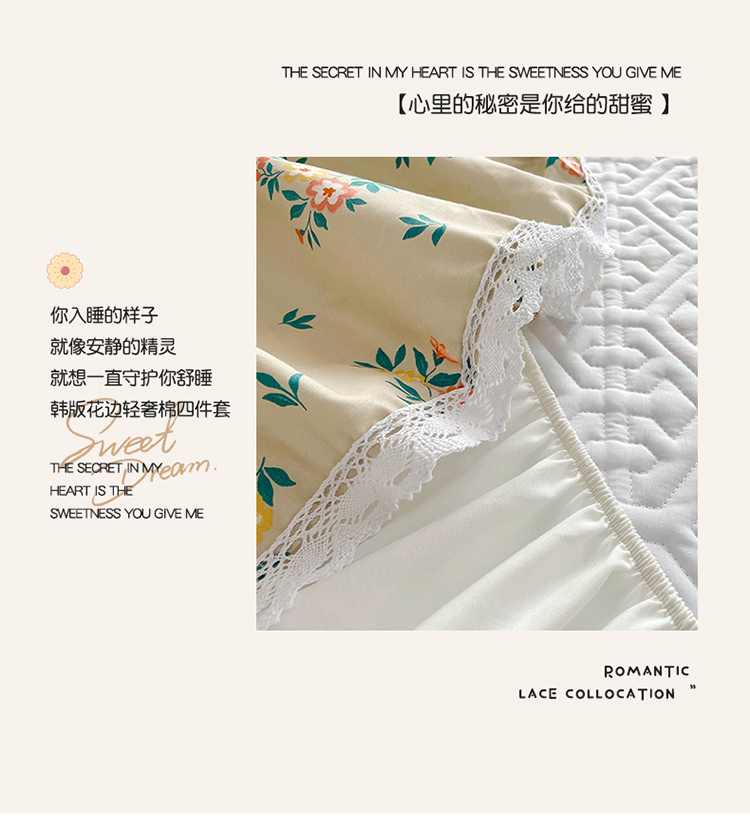(总)忘忧草 2025新款全棉133*72纯棉小清新床裙花边四件套,妃子笑,花开满满,花里梦,卡芙卡,陌上花颜,倾城繁花 灰,倾城繁花 紫,森物语,屋顶花园,樱桃浪漫,遇见浪漫,云香