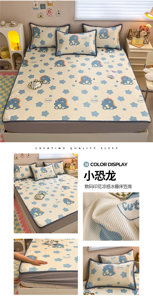 商品名称:懒猫 2024新款600D冰藤床笠款凉席 小恐龙-床笠款
