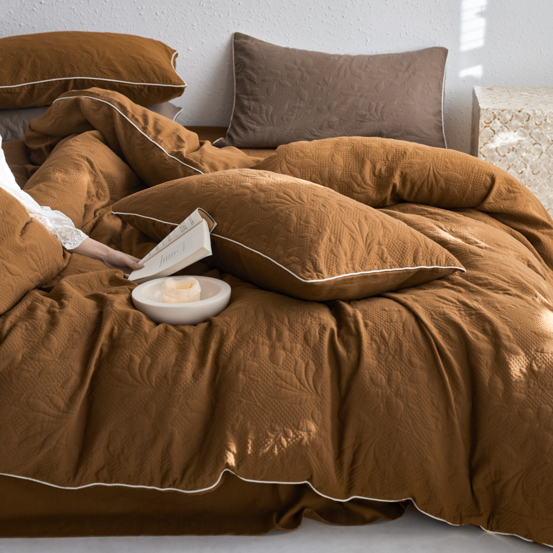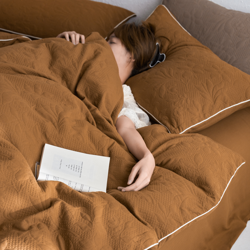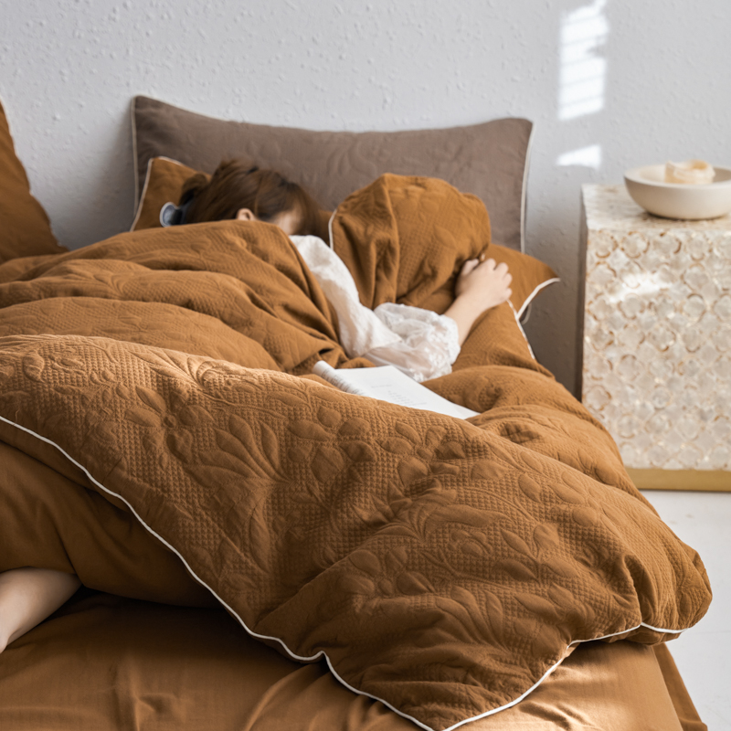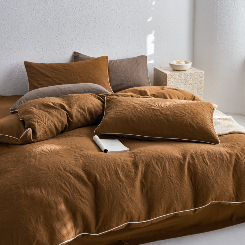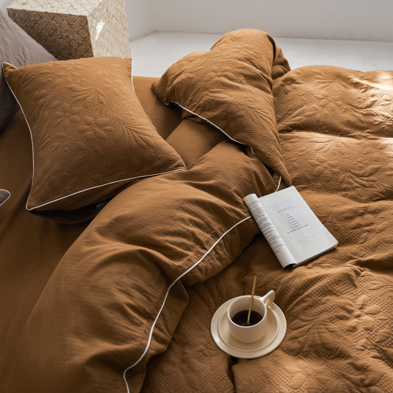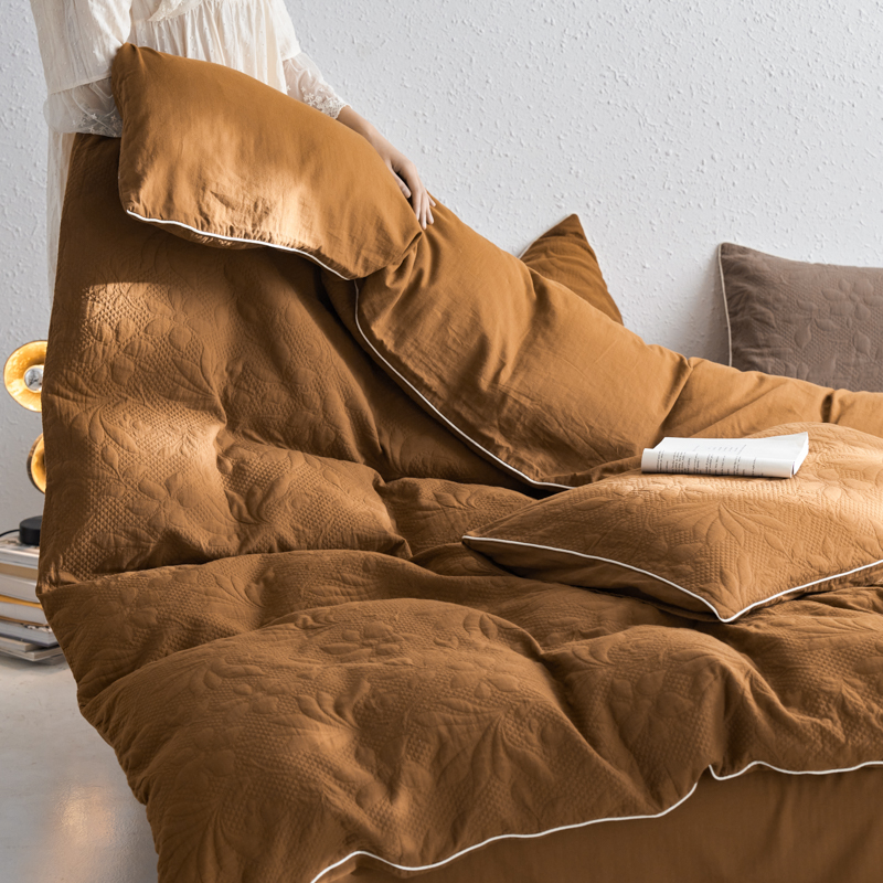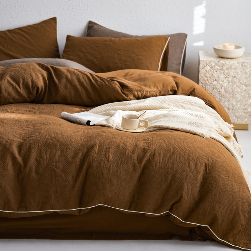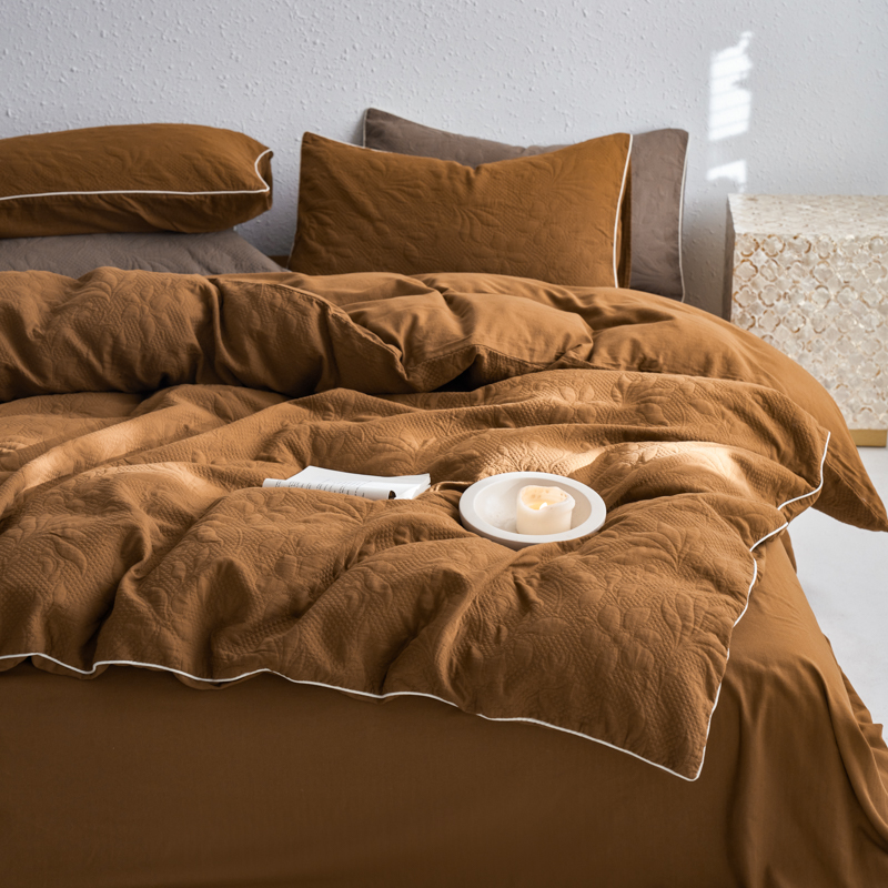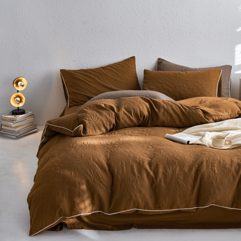 简家居 2023新款AB版全棉浮雕提花四件套-沐春 栗子
