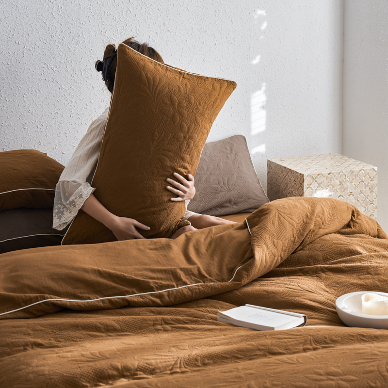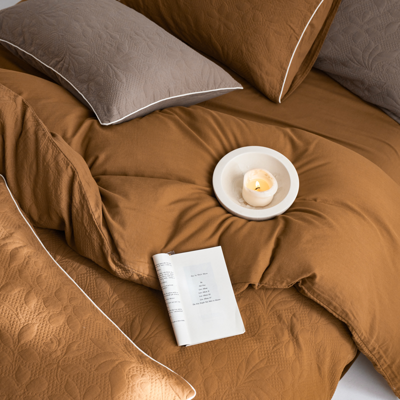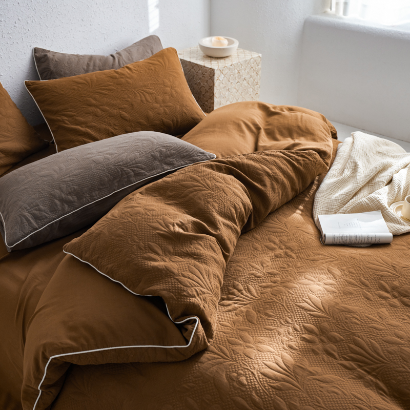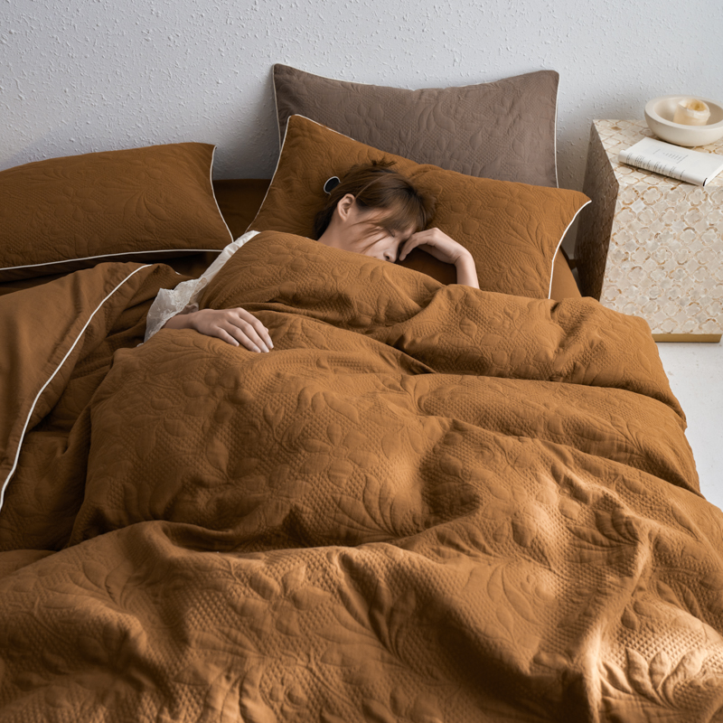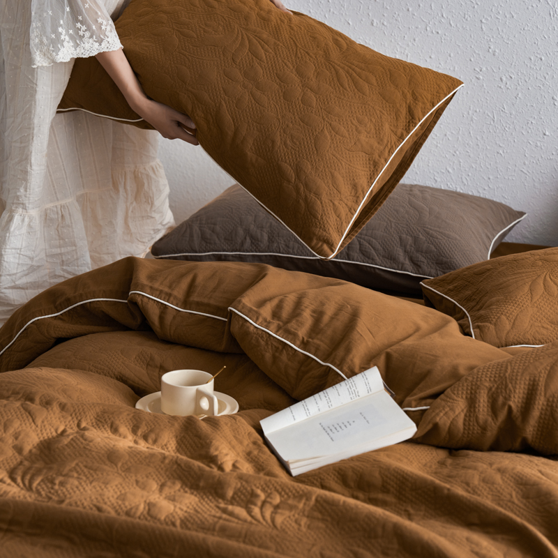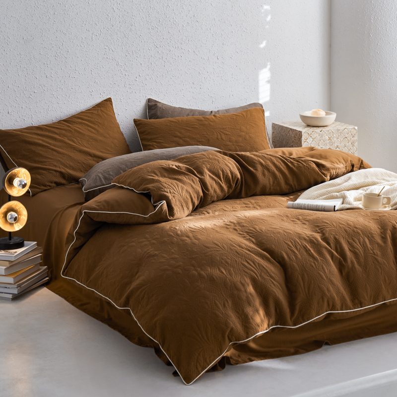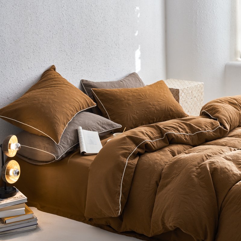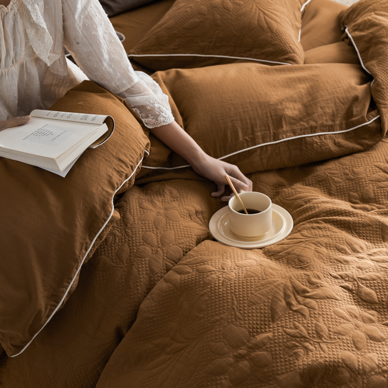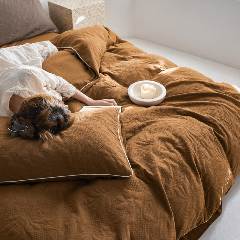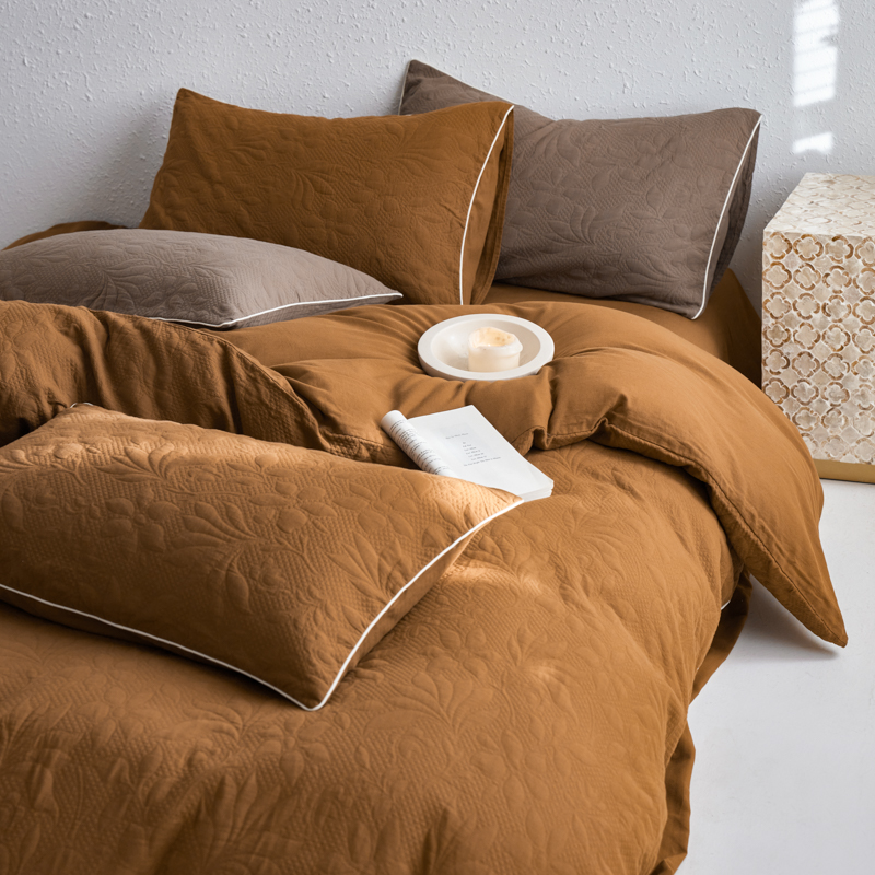 简家居 2023新款AB版全棉浮雕提花四件套-沐春 栗子
