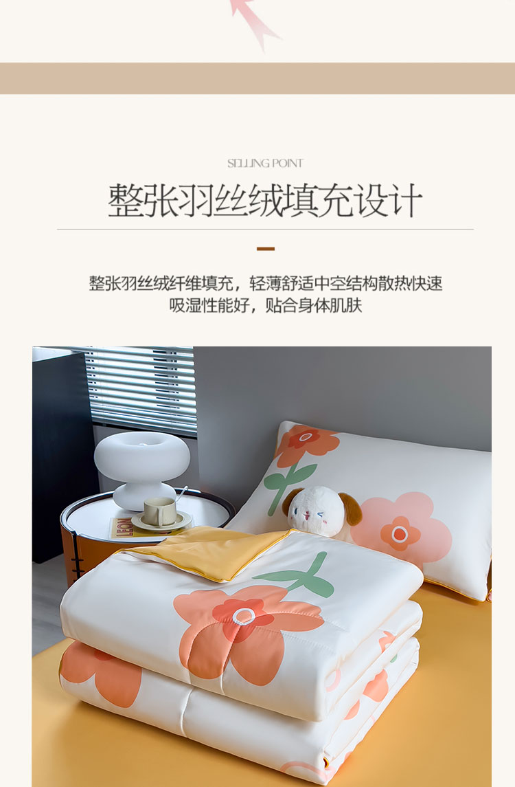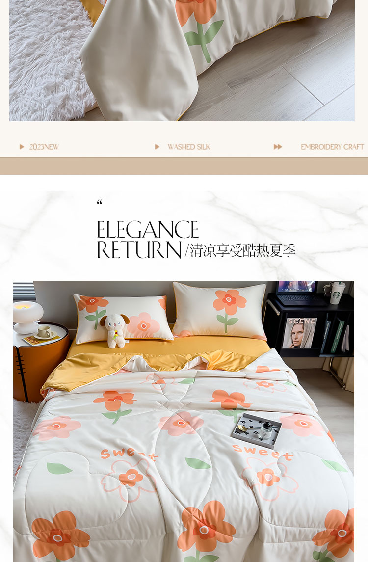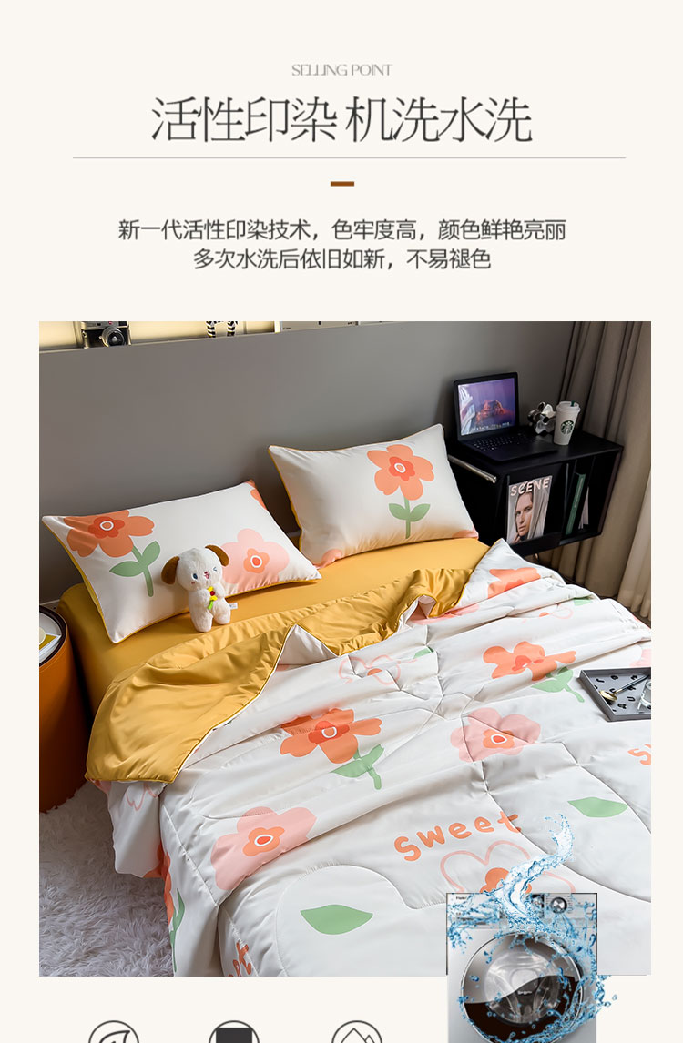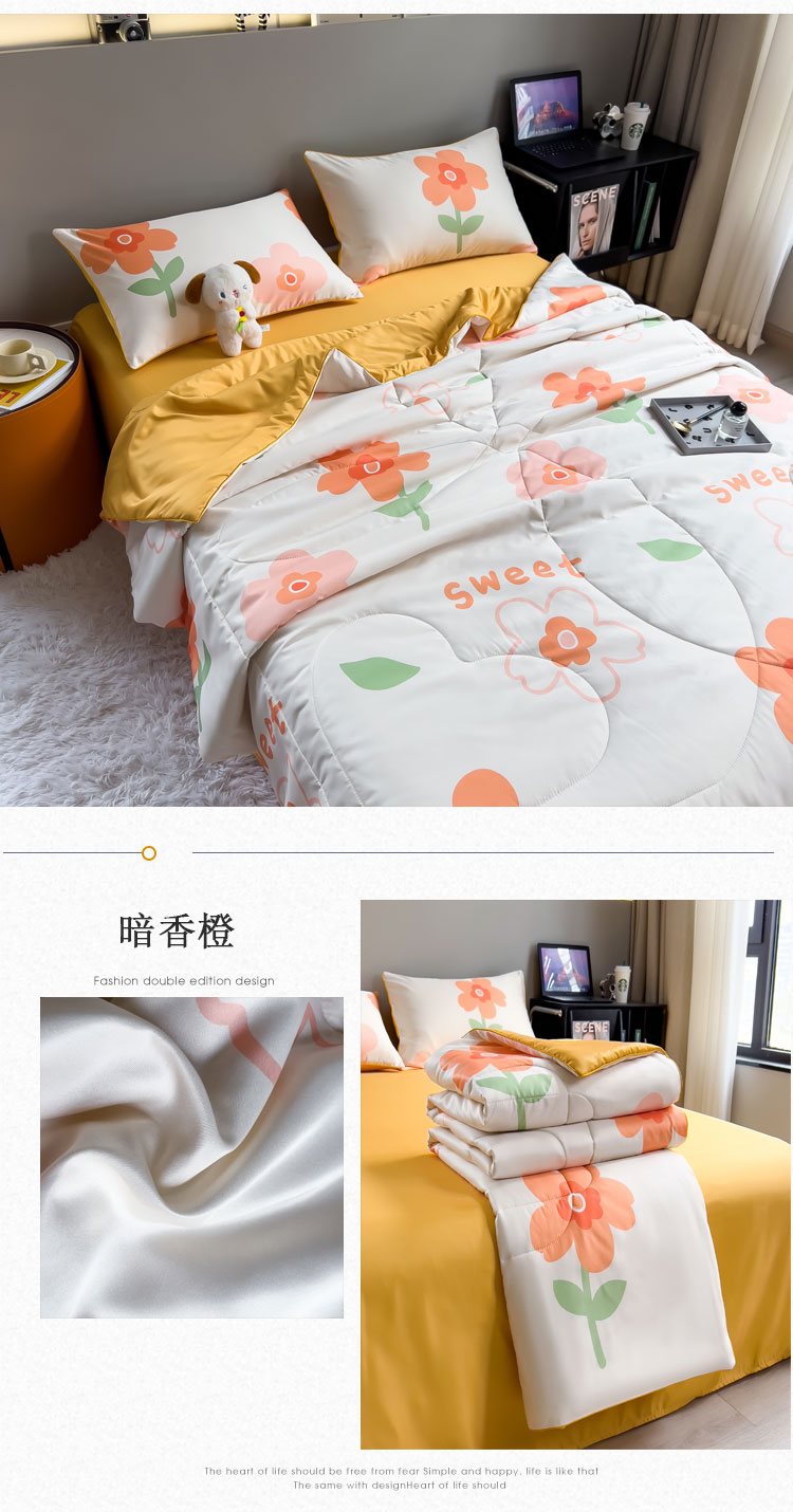 商品名称:新款夏凉被空调被可机洗儿童被夏季双人夏被四件套 暗香橙