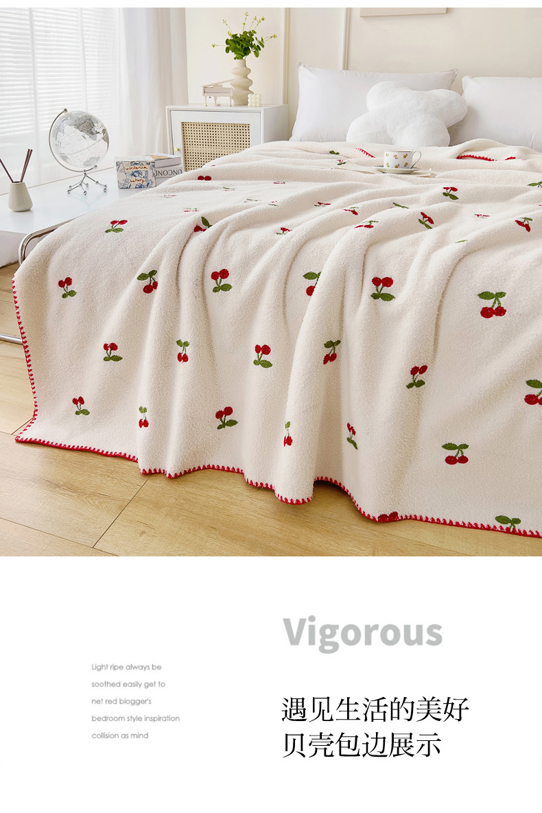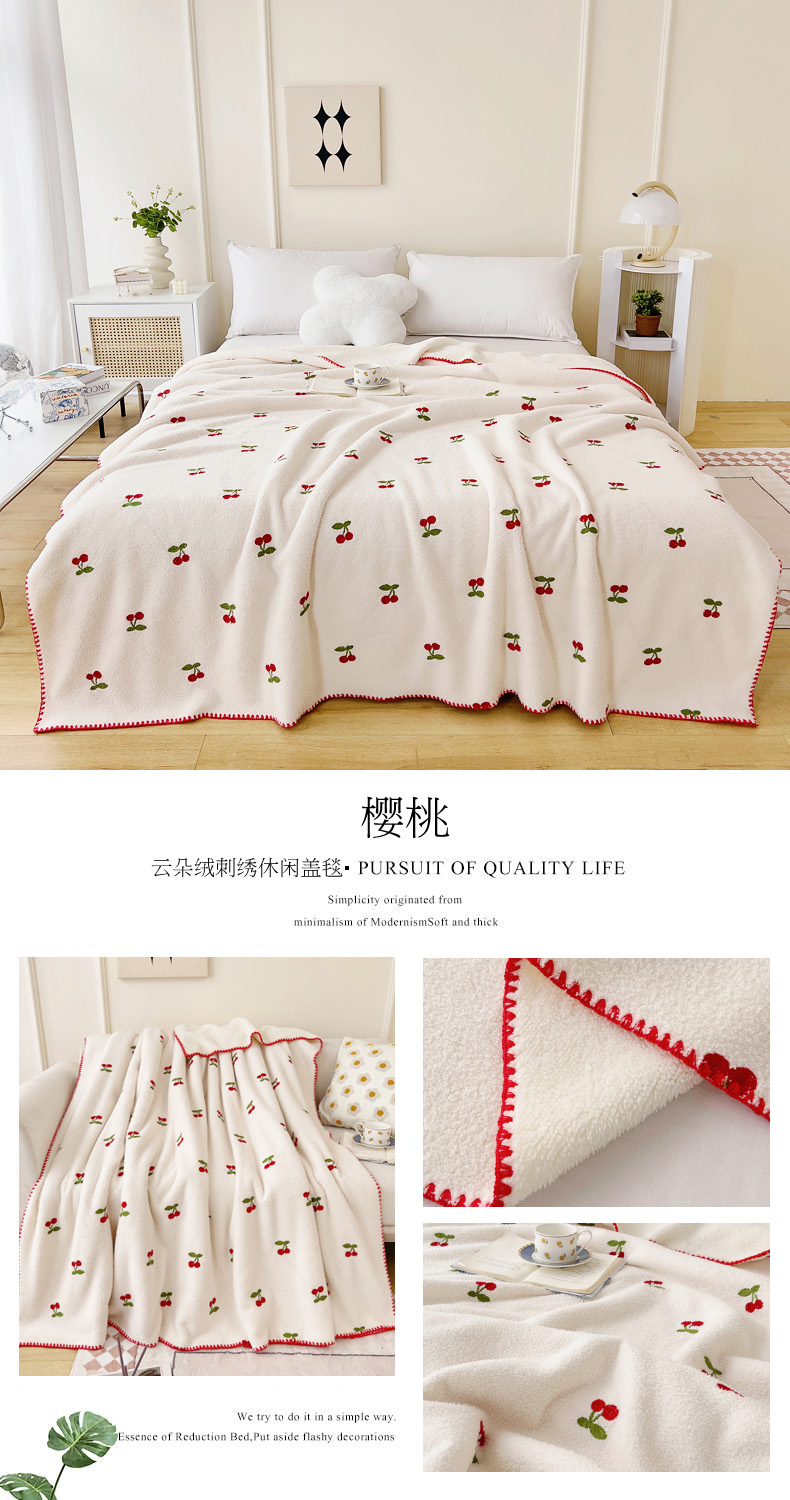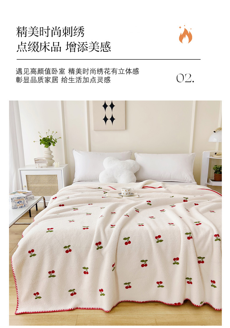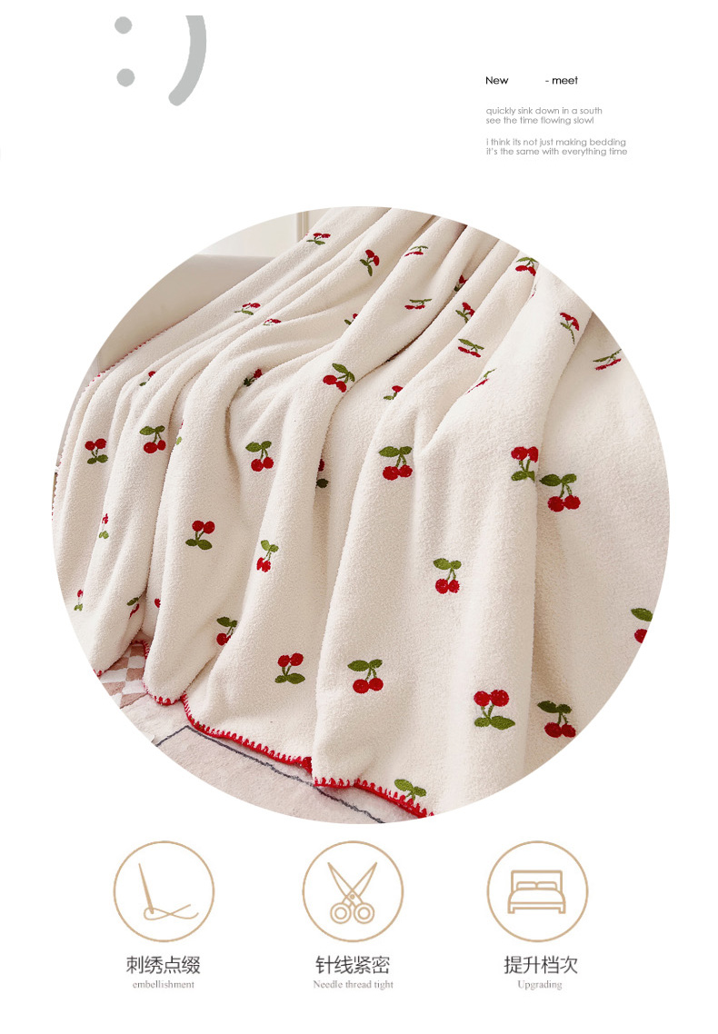 商品名称:恋佳2023新款云朵绒绣花毯毛毯 樱桃