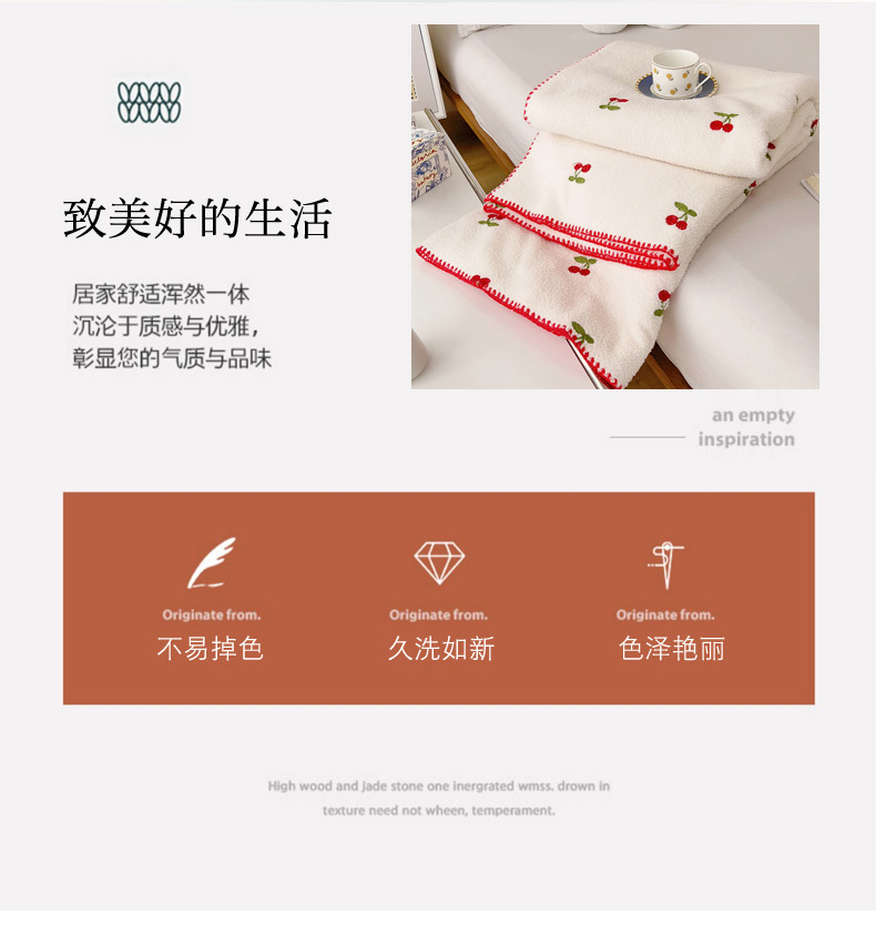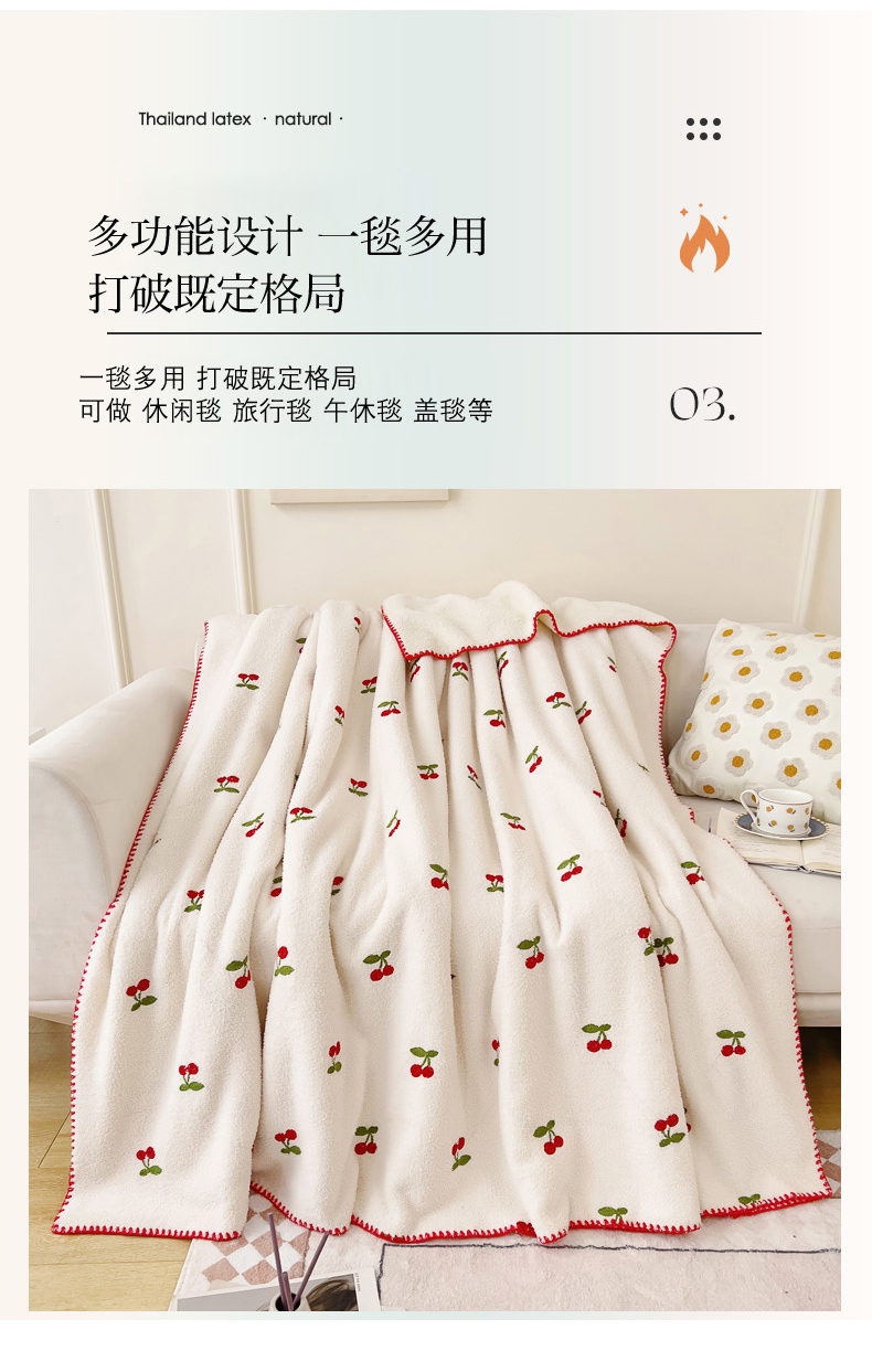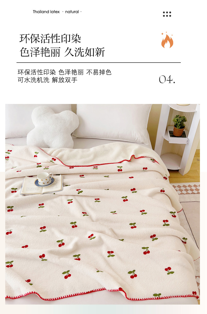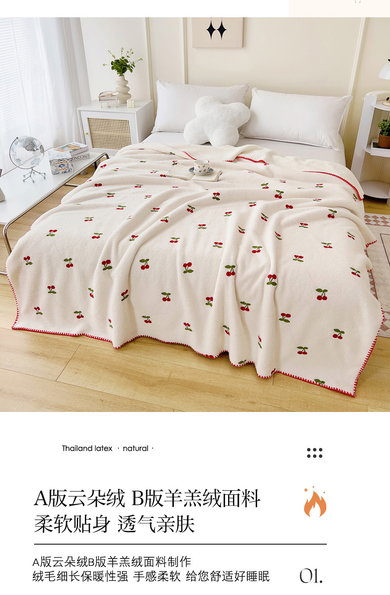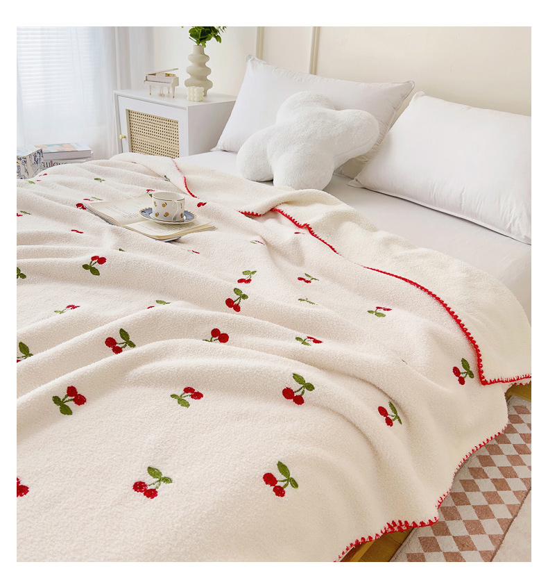 商品名称:恋佳2023新款云朵绒绣花毯毛毯 樱桃