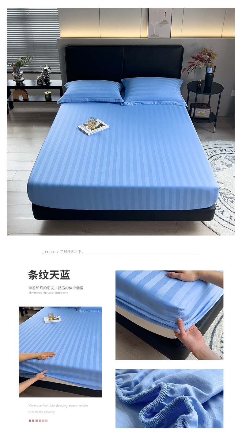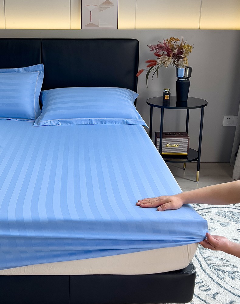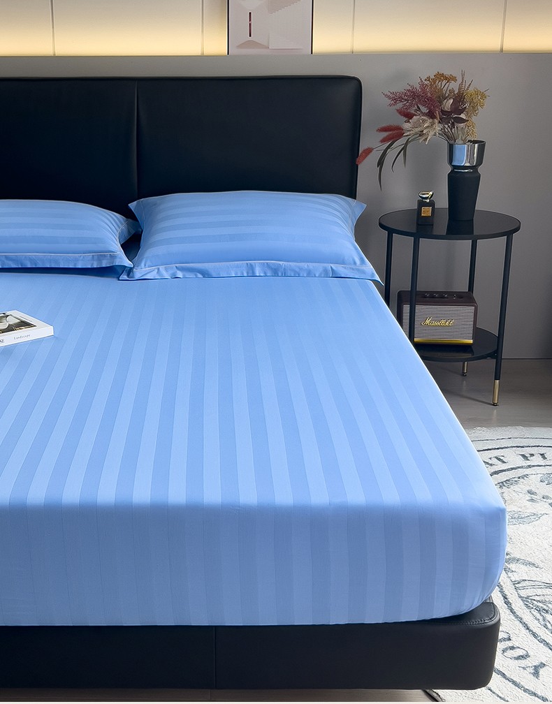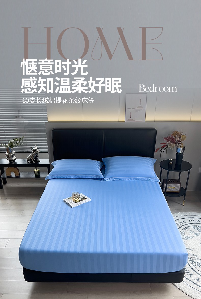 慕尚 2025新款60支长绒棉提花条纹系列单品床笠 条纹天蓝