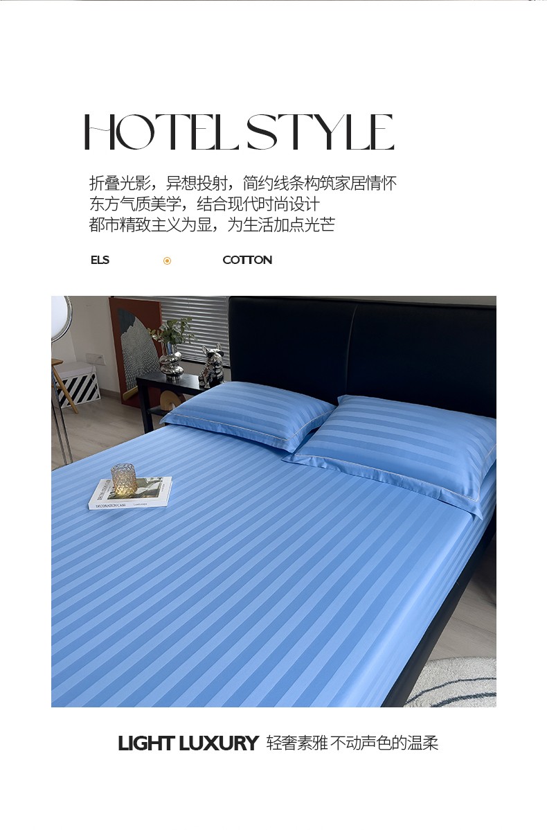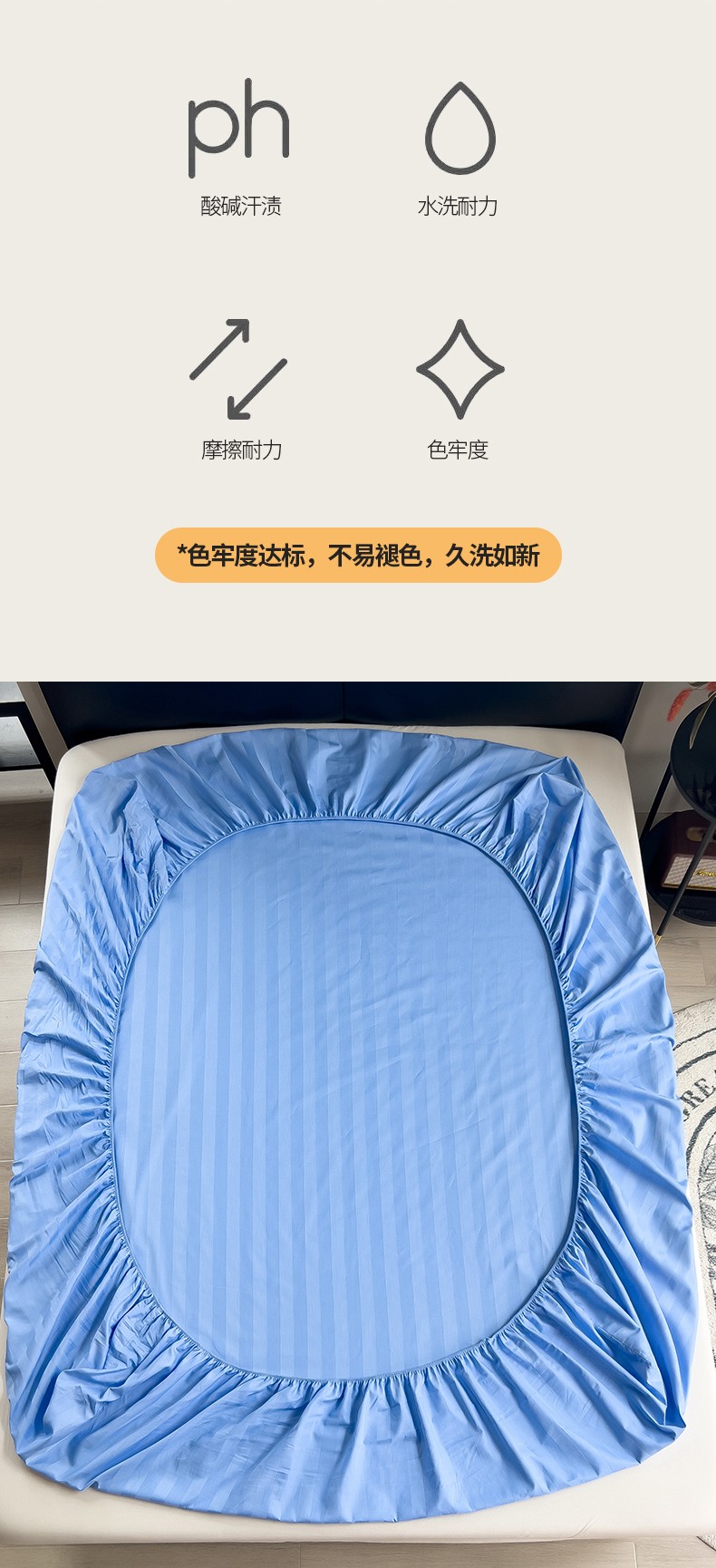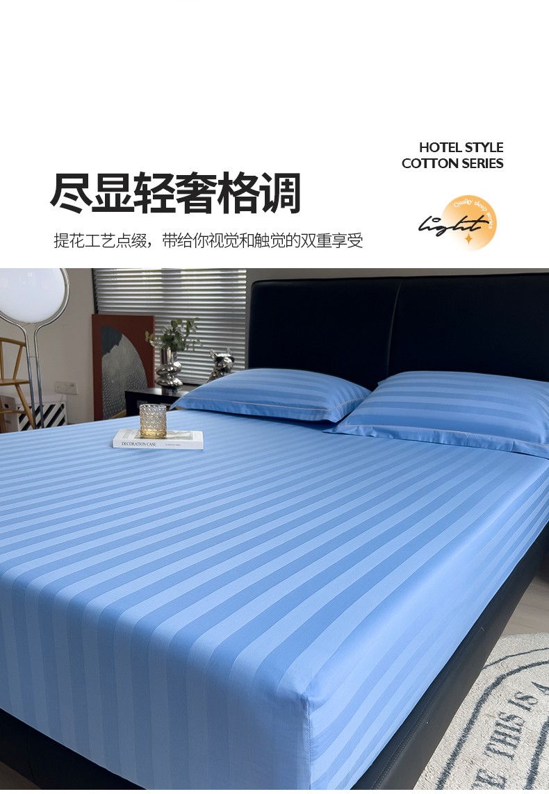 商品名称:慕尚 2025新款60支长绒棉提花条纹系列单品床笠 条纹天蓝