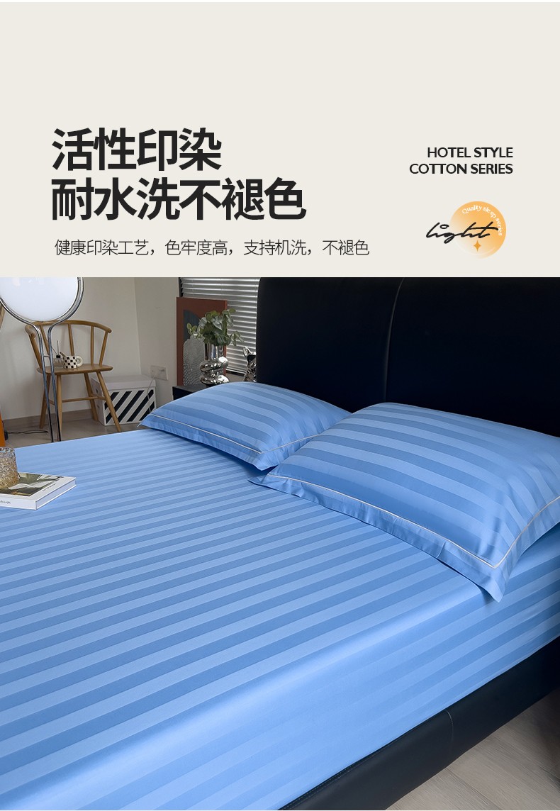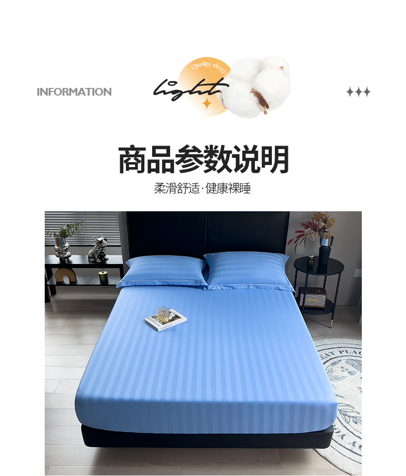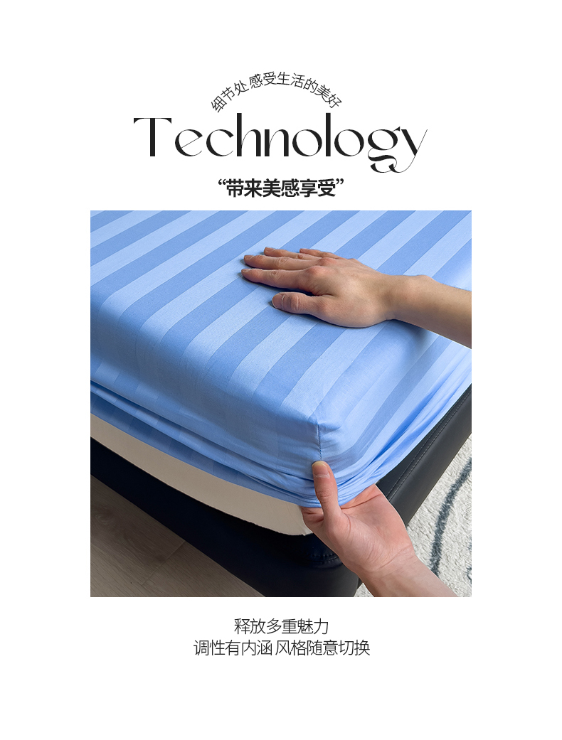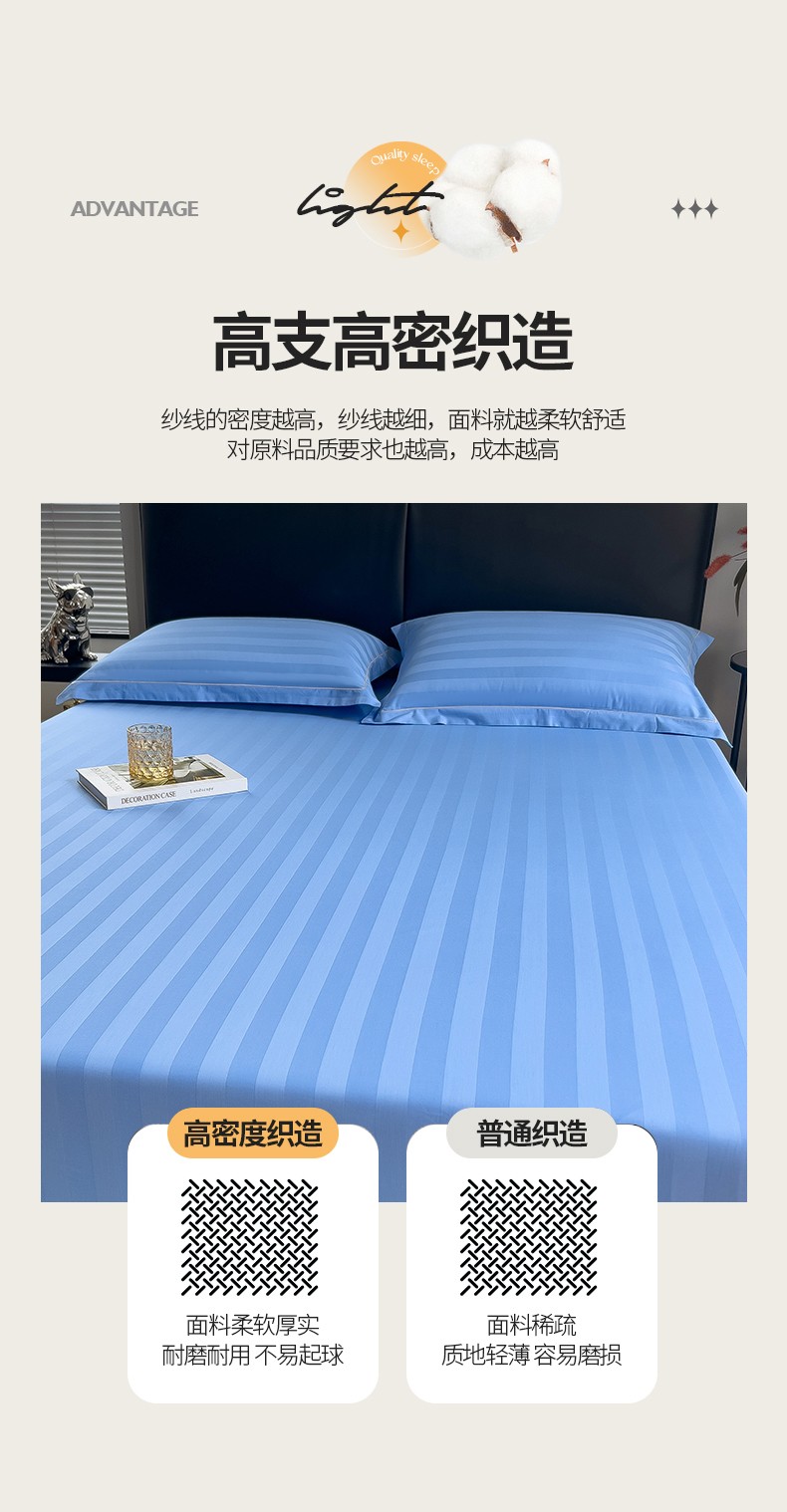 商品名称:慕尚 2025新款60支长绒棉提花条纹系列单品床笠 条纹天蓝