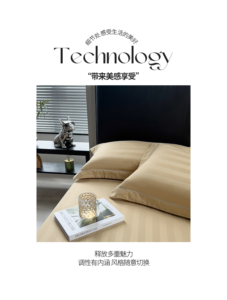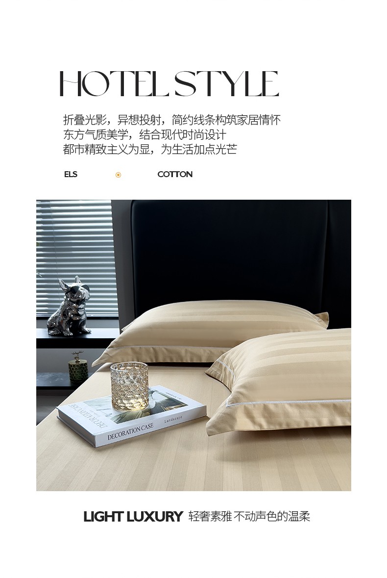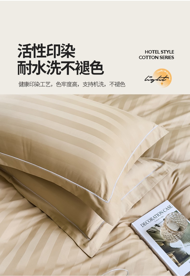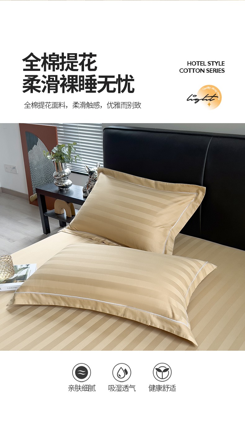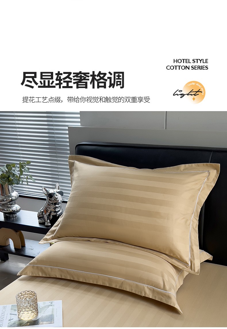慕尚 2025新款60支长绒棉提花条纹系列单品枕套 条纹卡其