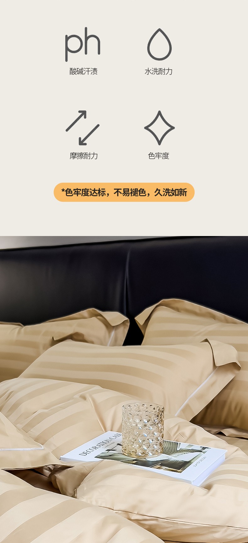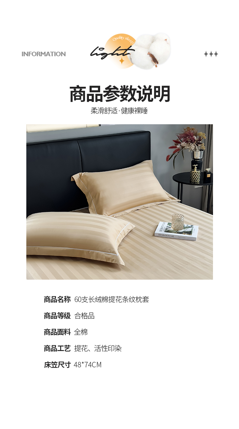 商品名称:慕尚 2025新款60支长绒棉提花条纹系列单品枕套 条纹卡其