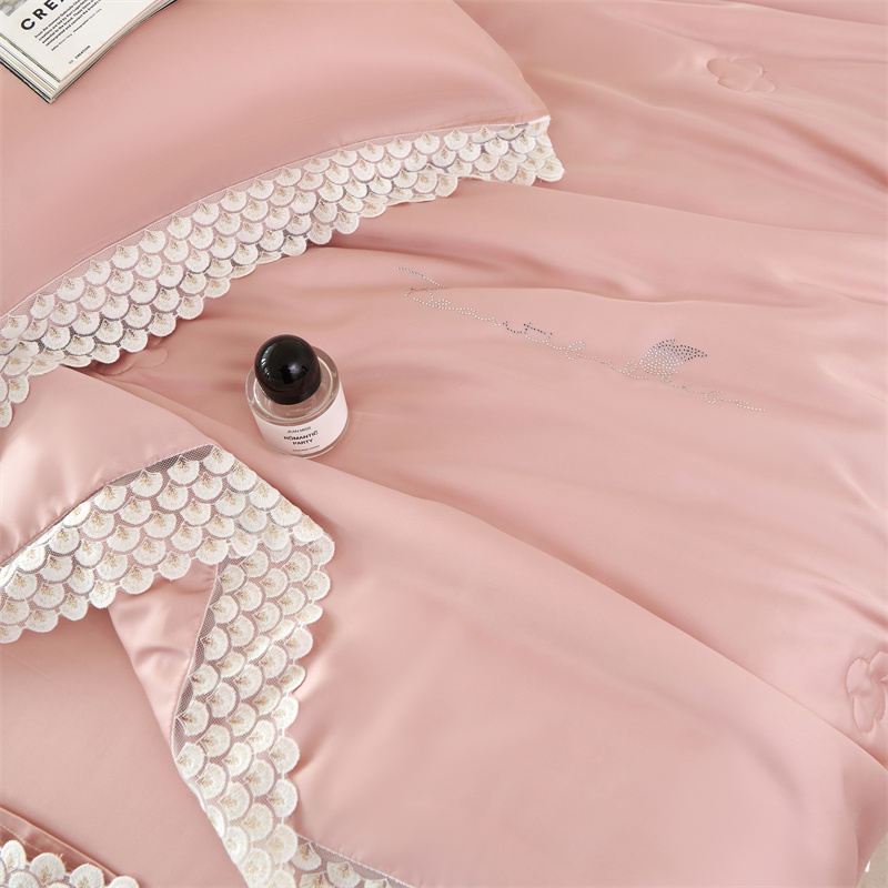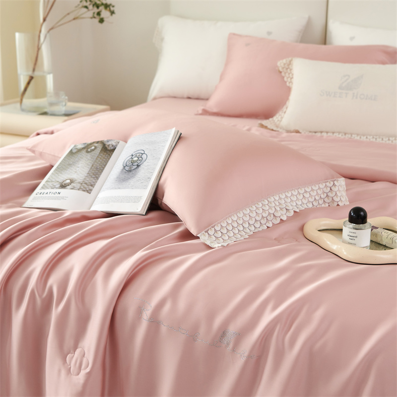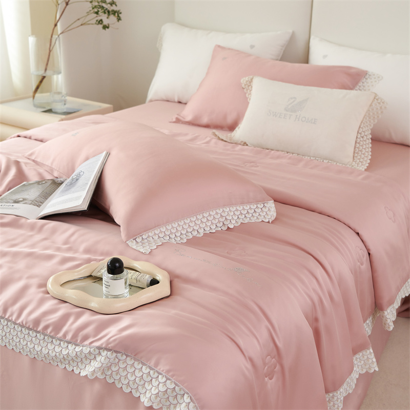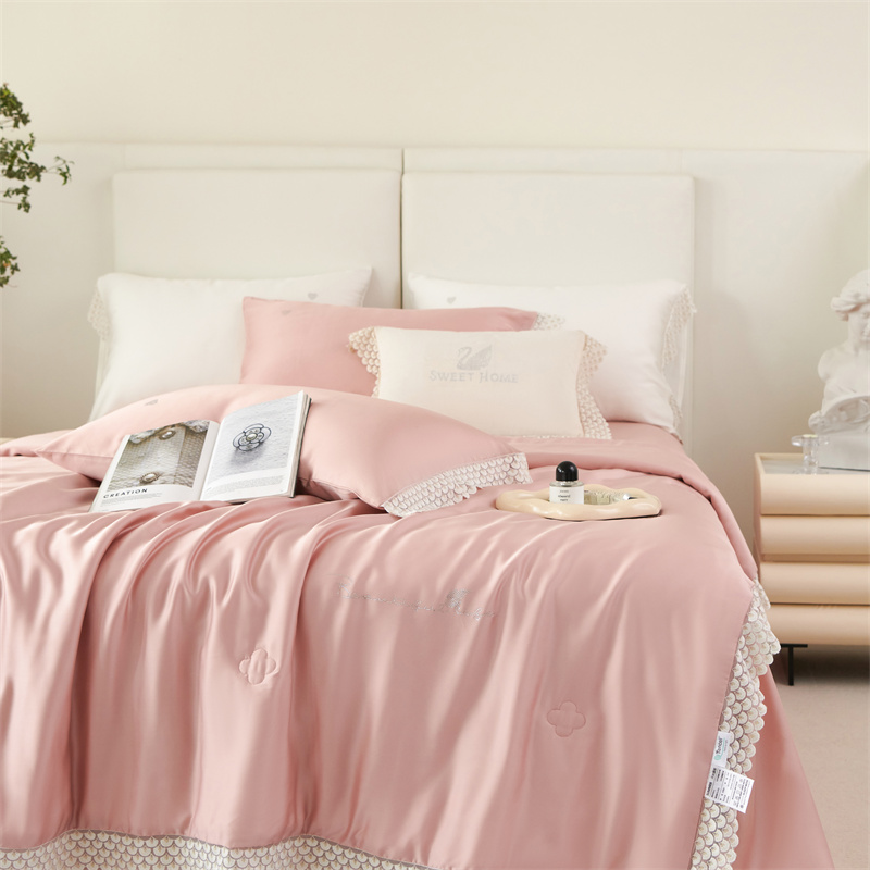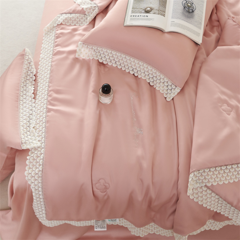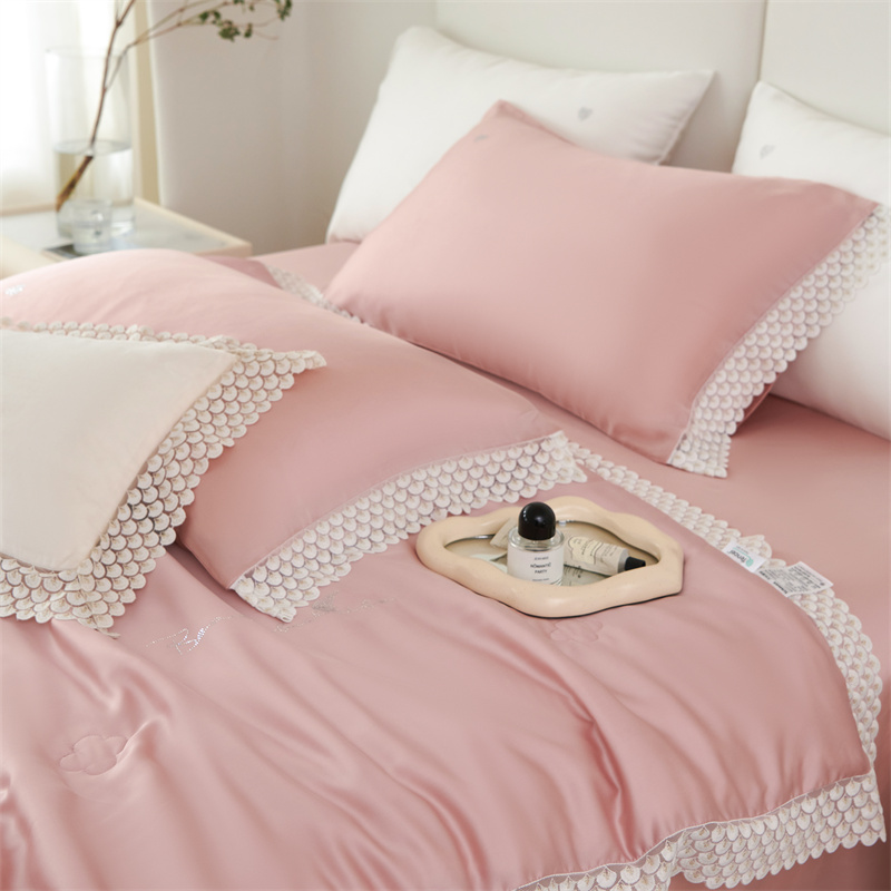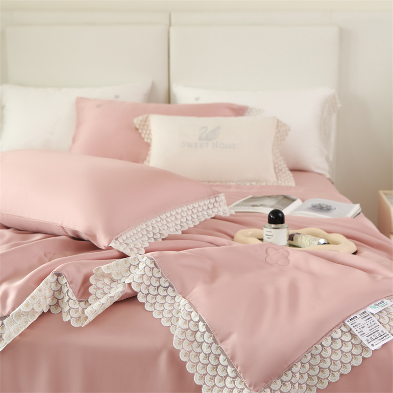 商品名称:时亿2023新款蕾丝款60支兰精天丝夏被-花海 花海 粉