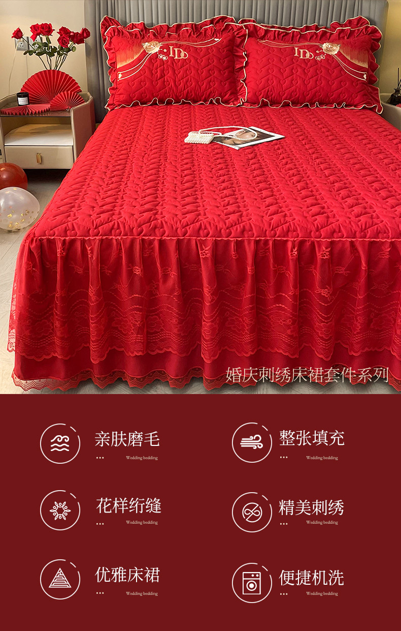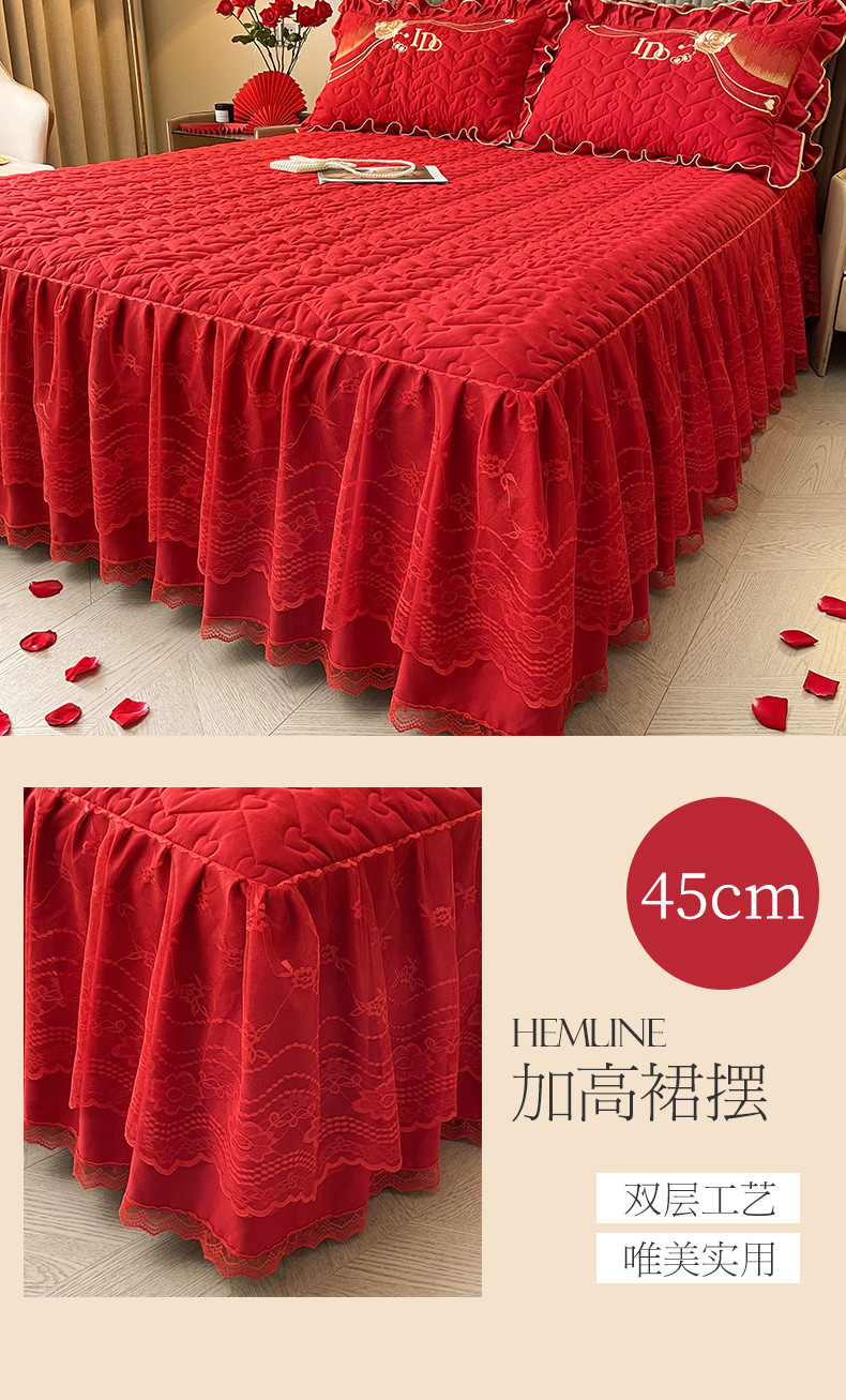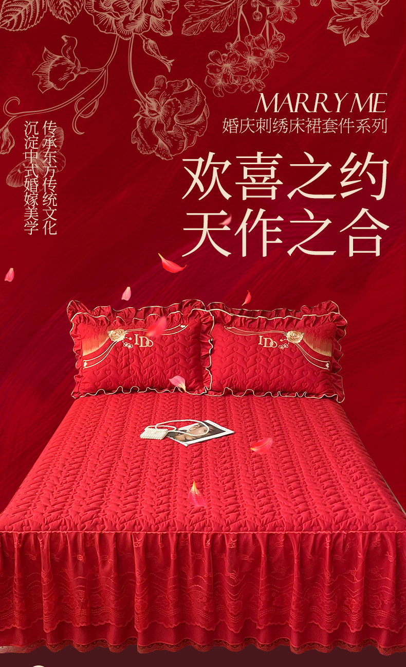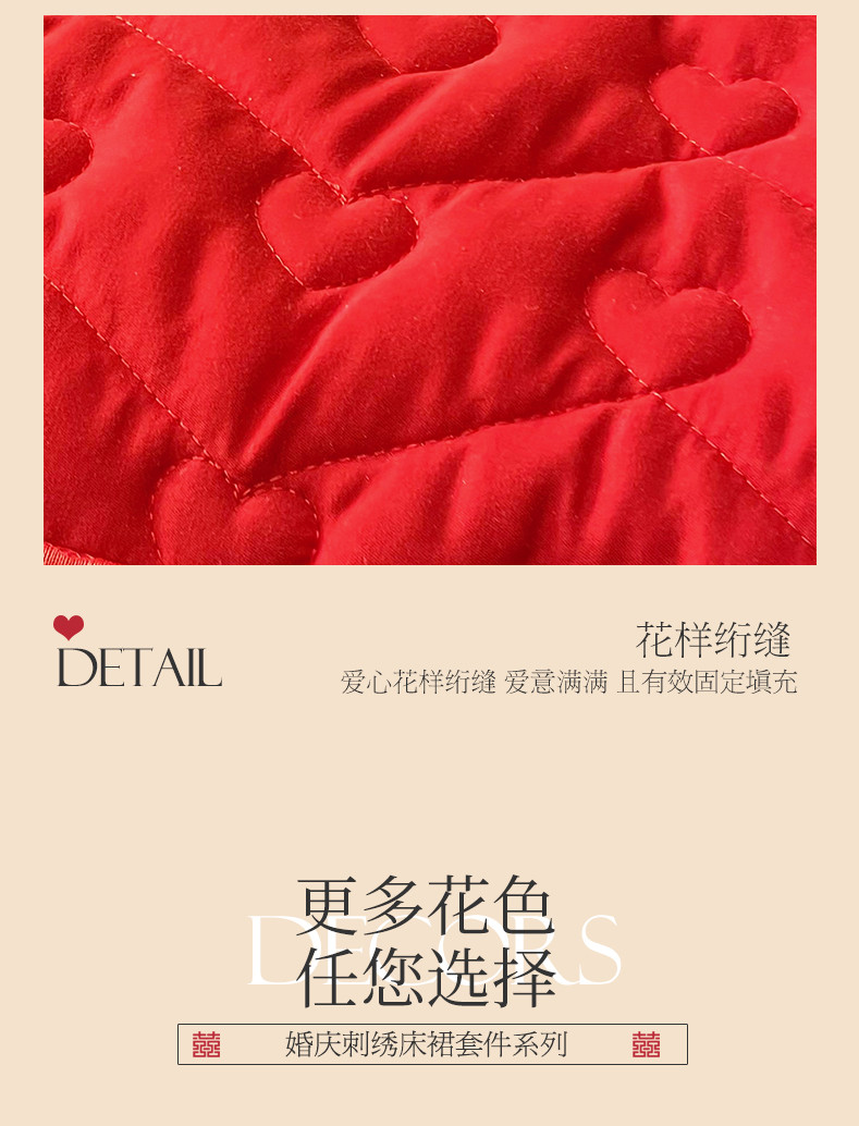 商品名称:宜凡家纺 2023新款亲肤磨毛婚庆夹棉床裙三件套 心相印