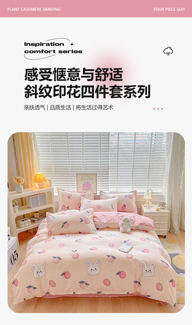 当前位置: 91家纺网 > 商品网购 > 床品套件 > 四件套 > 化纤普通四件套 > 简冠家纺 2023直播爆款北欧风亲肤植物羊绒磨毛四件套 橙橙兔