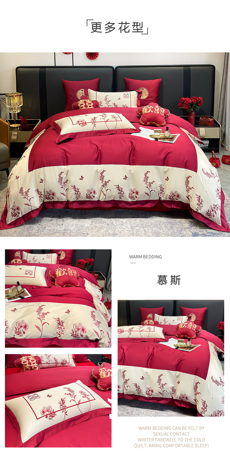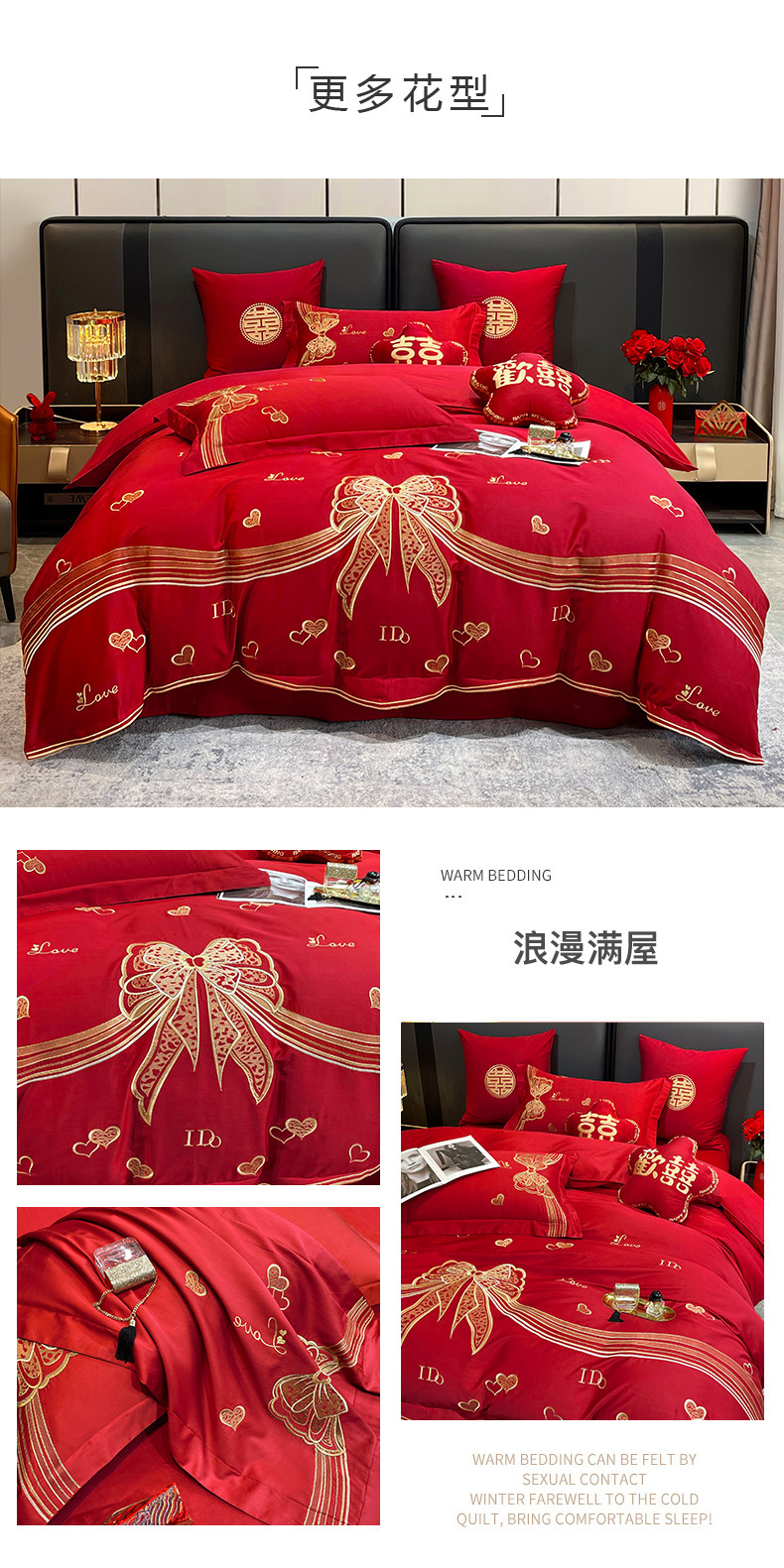 (总)甜咪咪婚庆 2025新款50支长绒棉全棉婚庆床单床盖四件套多件套刺绣工艺,洛可可,爱恋小熊,爱意久久,多子多福,花田喜事,节节高升,克拉恋人,浪漫情怀,怦然心动红,怦然心动玉,甜心玫瑰,温莎公主,伊甸园,醉红妆