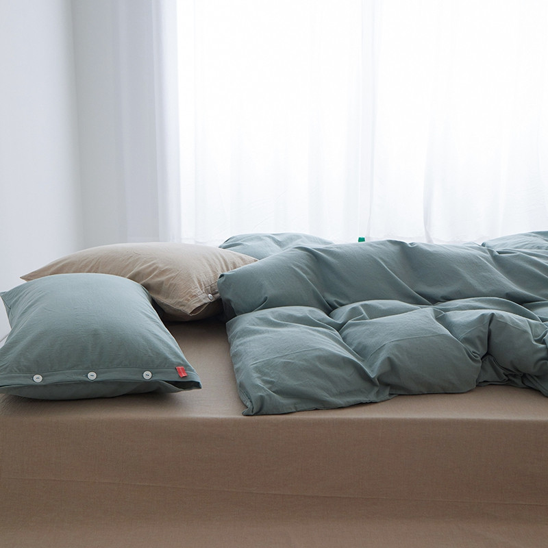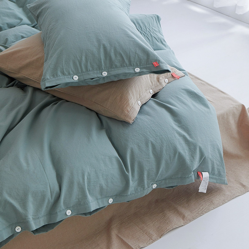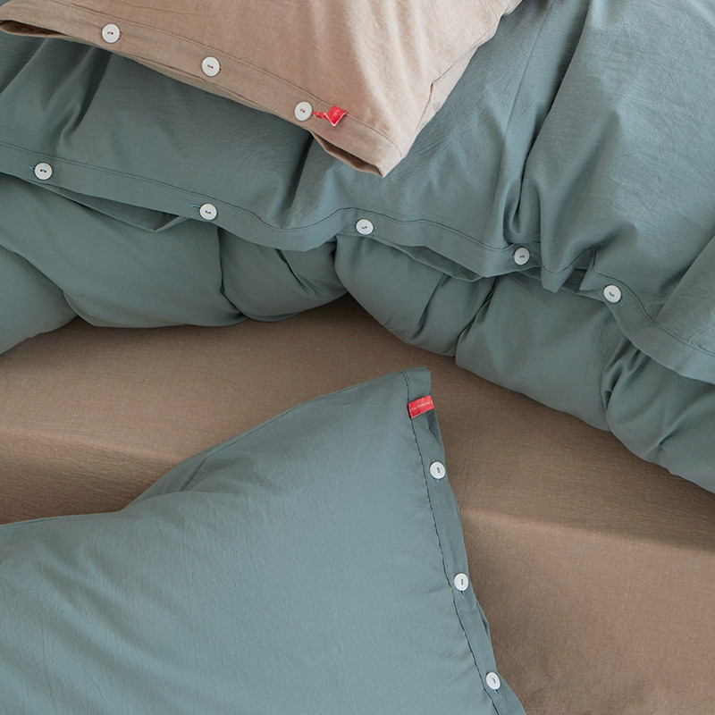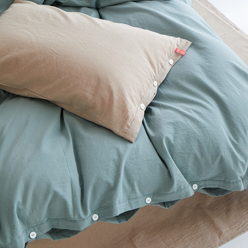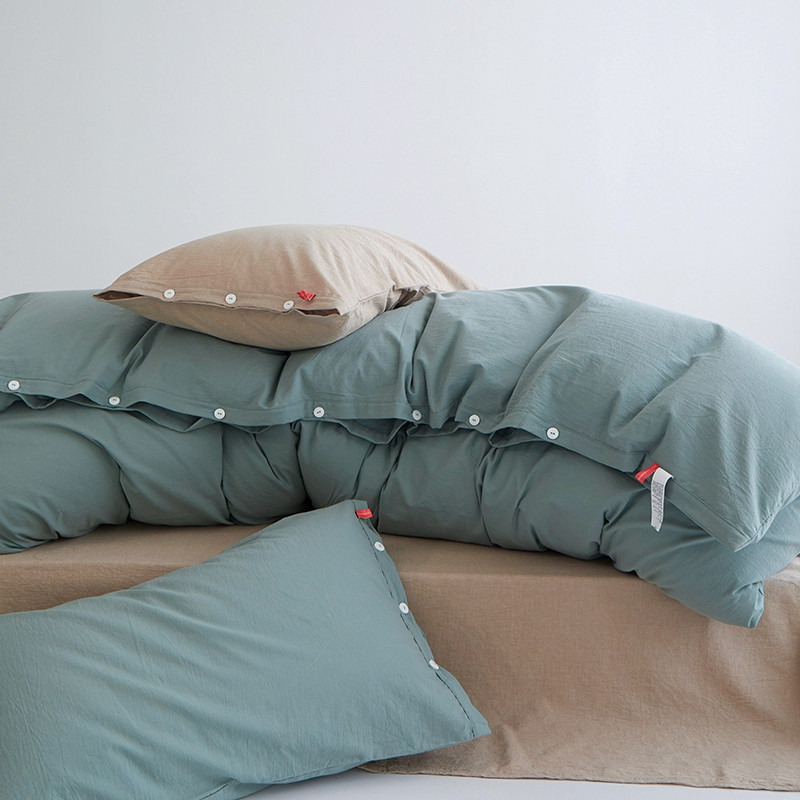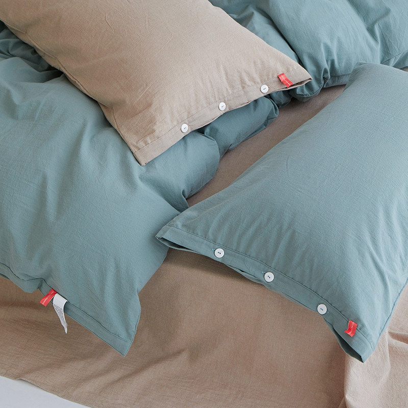 当前位置: 91家纺网 > 商品网购 > 床品套件 > 四件套 > 水洗棉四件套 > 安莱生活水洗棉全棉色经色纬高支高密纽扣款工艺混搭拼色四件套(系列二) 灰绿+米驼(灰绿米驼)
