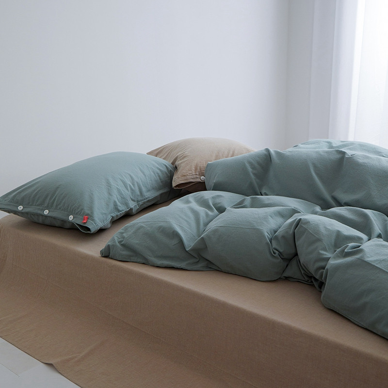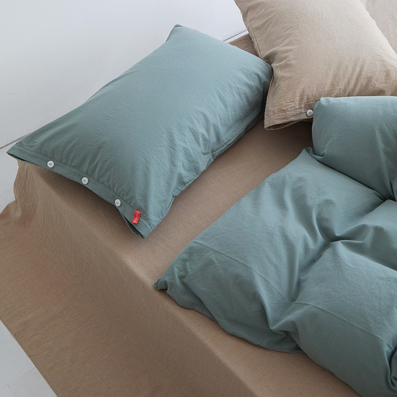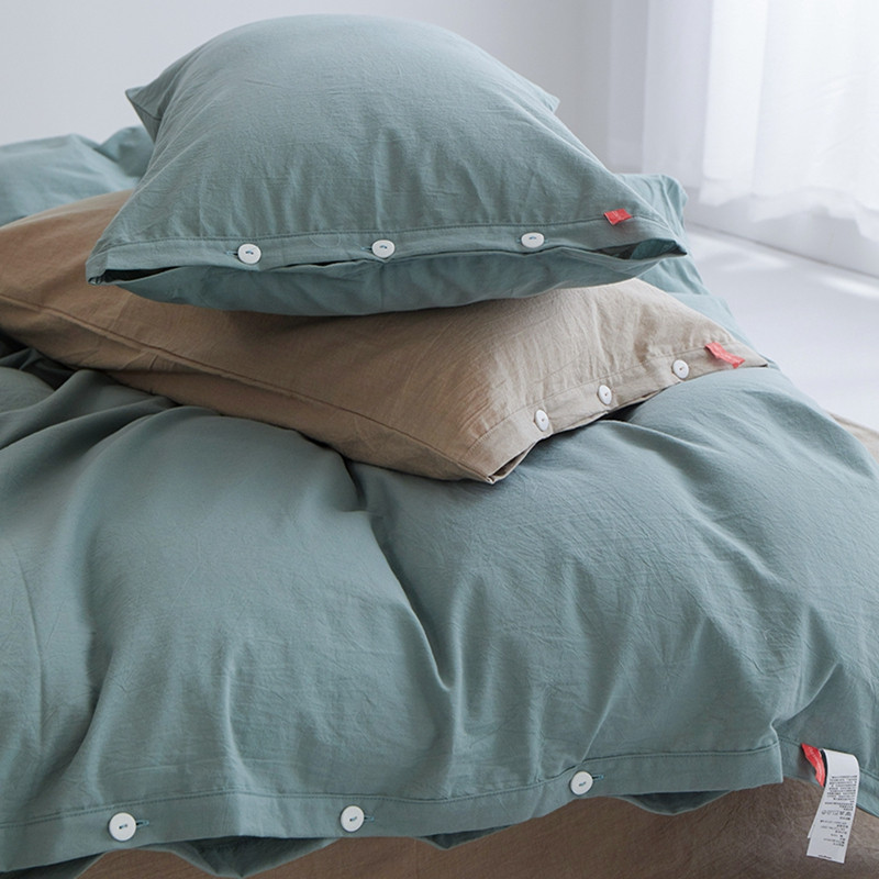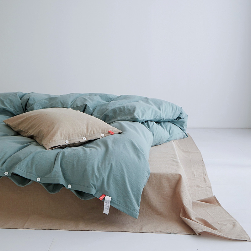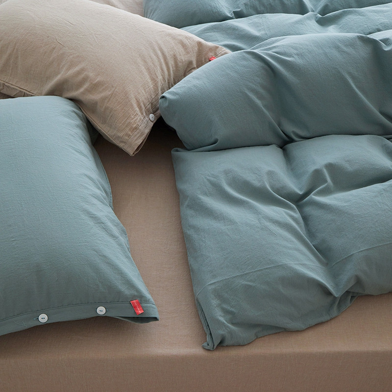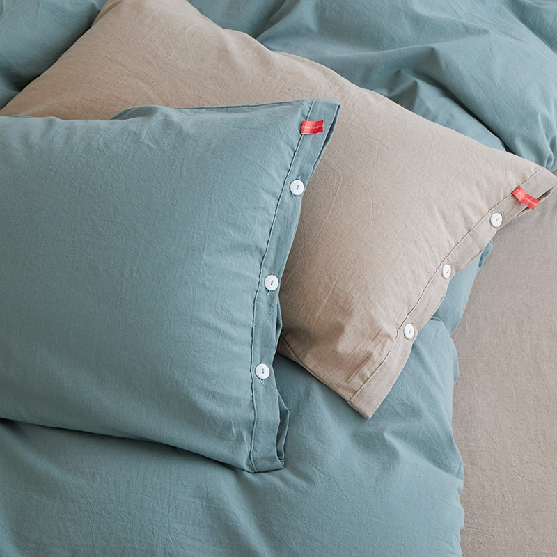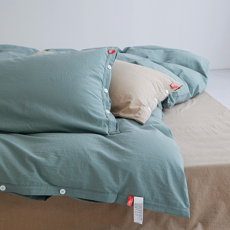 当前位置: 91家纺网 > 商品网购 > 床品套件 > 四件套 > 水洗棉四件套 > 安莱生活水洗棉全棉色经色纬高支高密纽扣款工艺混搭拼色四件套(系列二) 灰绿+米驼(灰绿米驼)